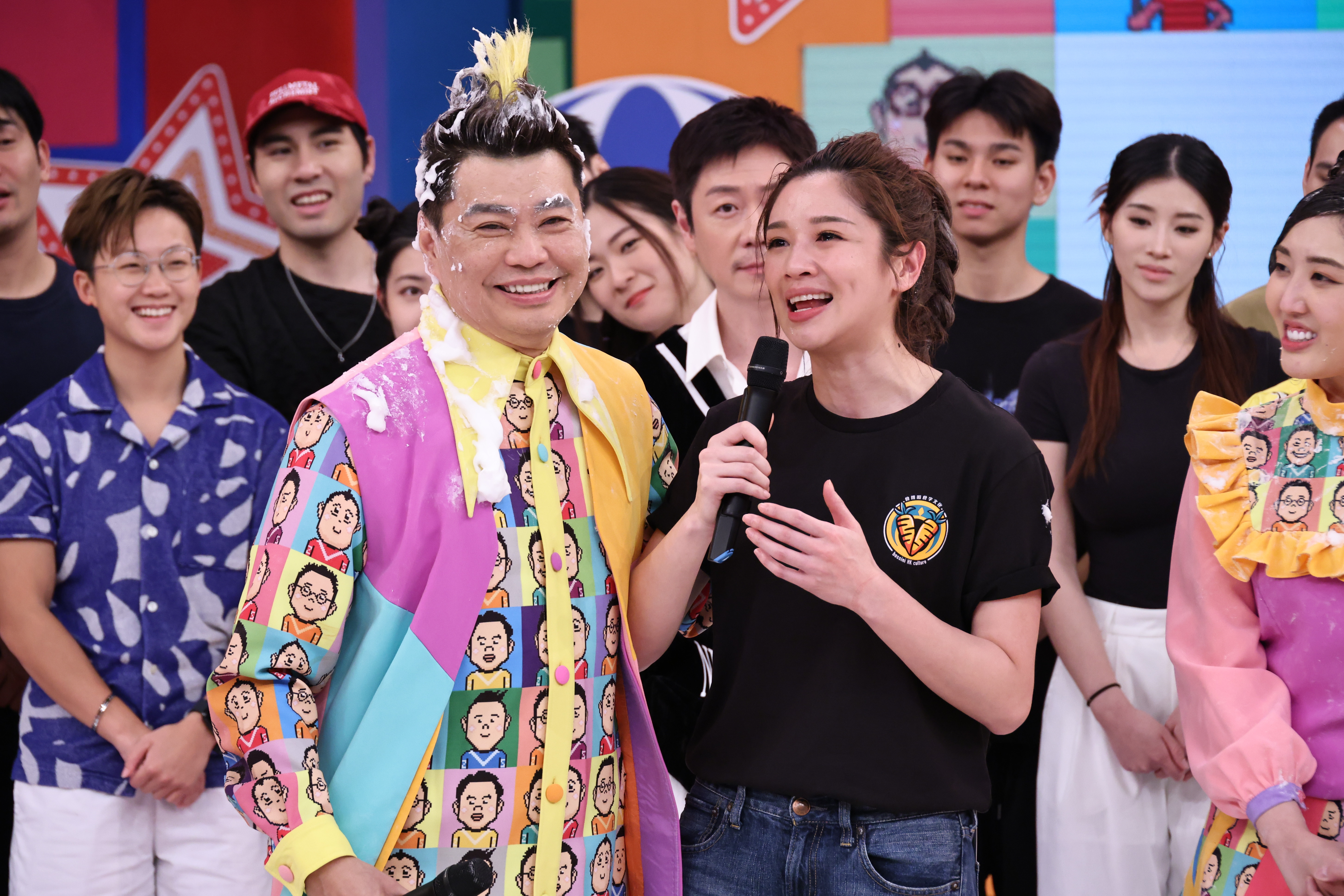 今集嘅「開心無敵爭櫈仔」堪稱《獎門人》史上最強, 40幾人一同上陣爭櫈仔,首個回合已經玩到人疊人,場面非常墟冚。之後「遊戲魔人」洪天明同陳蒨葶上演 1 對 1 決戰,陳蒨葶表現異常兇狠,獎門人都唔睇好洪天明可以贏,仲話陳蒨葶好鬼狼呀!而喺「開心無敵開口中」戰況同樣激烈,唔只眾嘉賓齊齊變Cream人,洪天明仔仔亦有落場玩埋一份,佢仲勁大膽向獎門人掟Cream!![]()