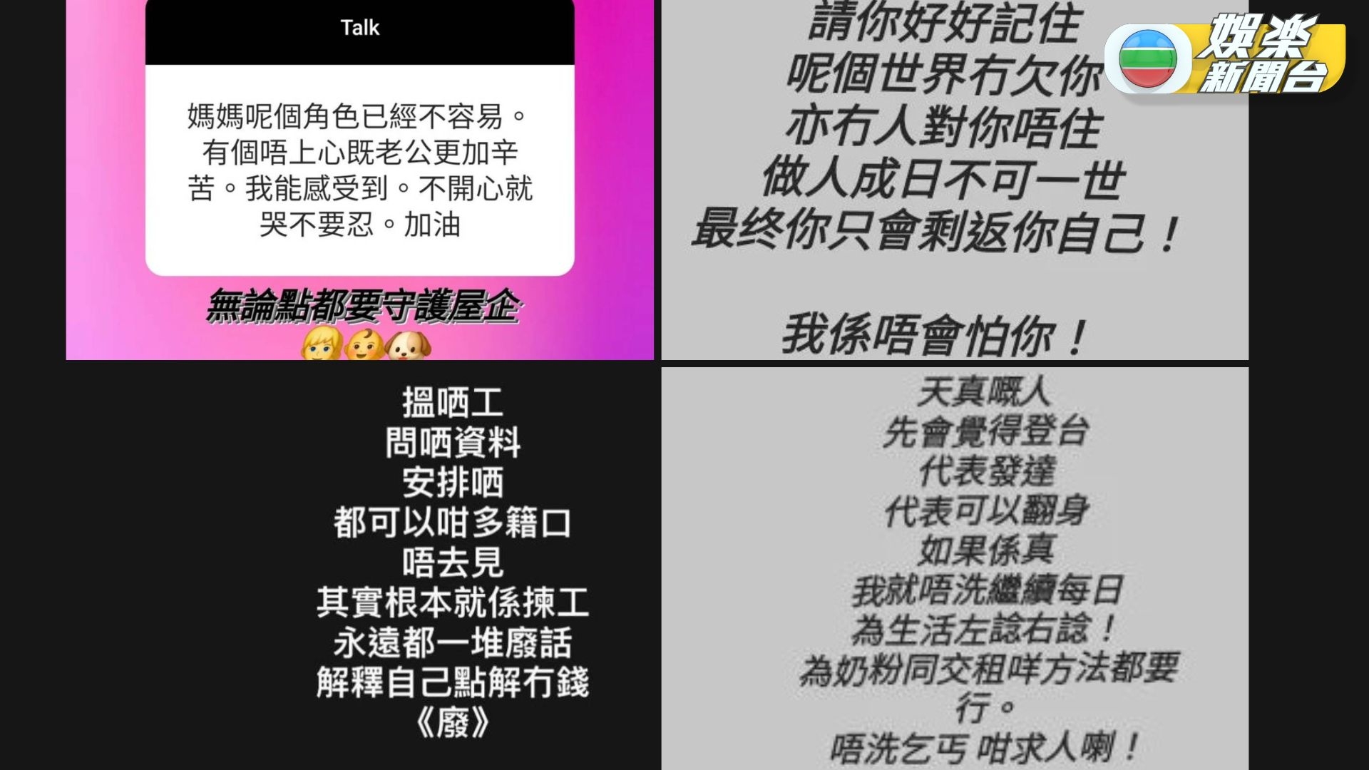至於Steven老婆雯雯日前抱怨Steven曾搵到新工,卻諸多藉口唔肯見工,直接對方「廢」,又指「其實根本就係揀工,永遠一堆廢話解釋自己點解冇錢」,網民估Steven辭咗茶餐廳份工,再次淪為失業大軍;雯雯今日亦喺社交平台再次呻每日為生活左諗右諗,又指「天真嘅人先會覺得登台代表發達、代表可以翻身」,仲話佢哋要為奶粉同交租咩方法都要行。呢次Steven似乎投身建造業,未知改唔改善到屋企生活!