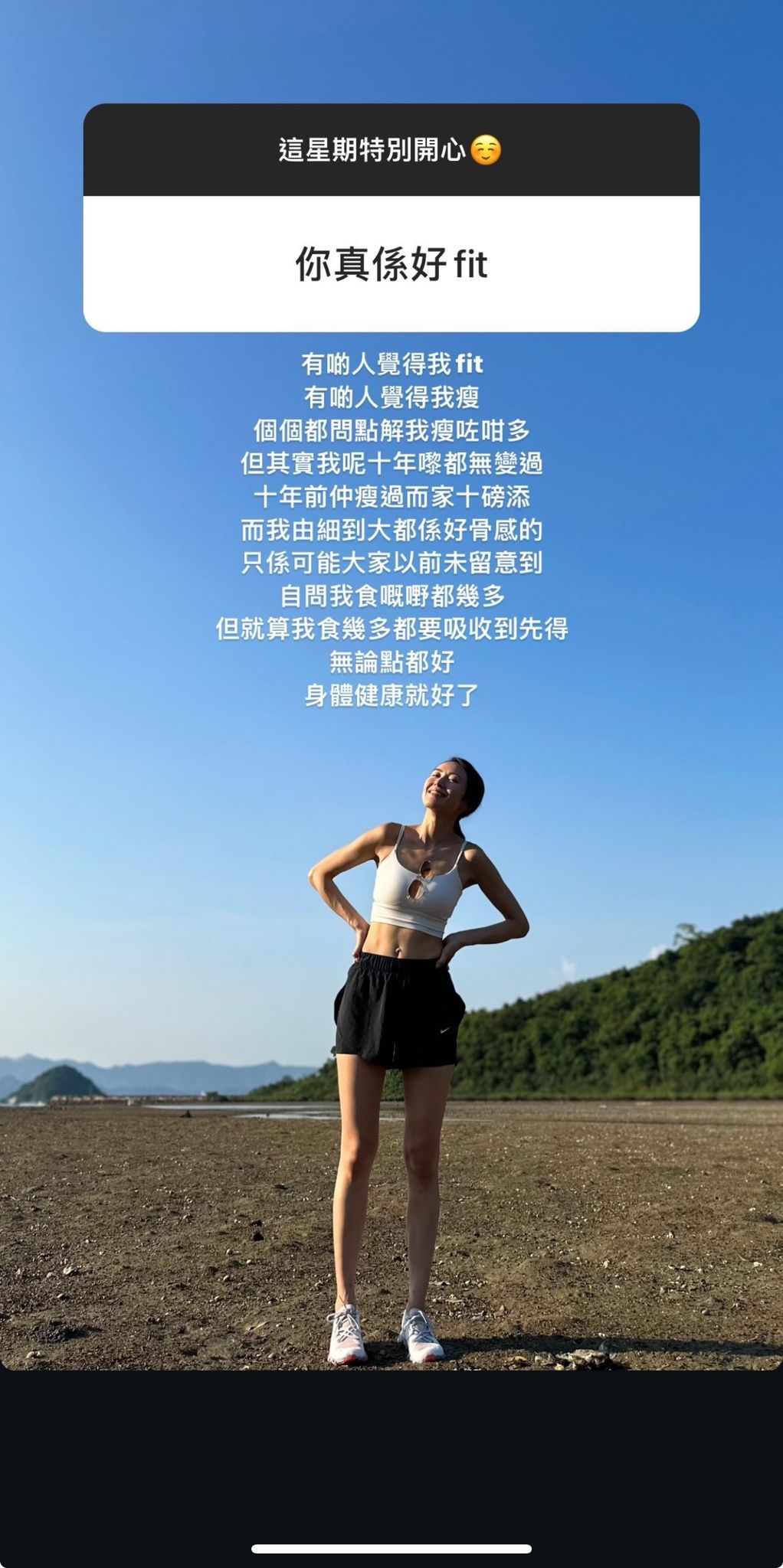 見到大家咁擔心佢嘅健康,湯怡都有作出回應,佢話:「個個都問點解我瘦咗咁多?但其實呢我呢十年嚟都無變過,十年前仲瘦過而家十磅添,而我由細到大都係好骨感的,只係可能大家以前未留意到,自問我食嘅嘢都幾多,但就算我食幾多都要吸引到先得,無論點都好,身體健康就好了。」![]()
