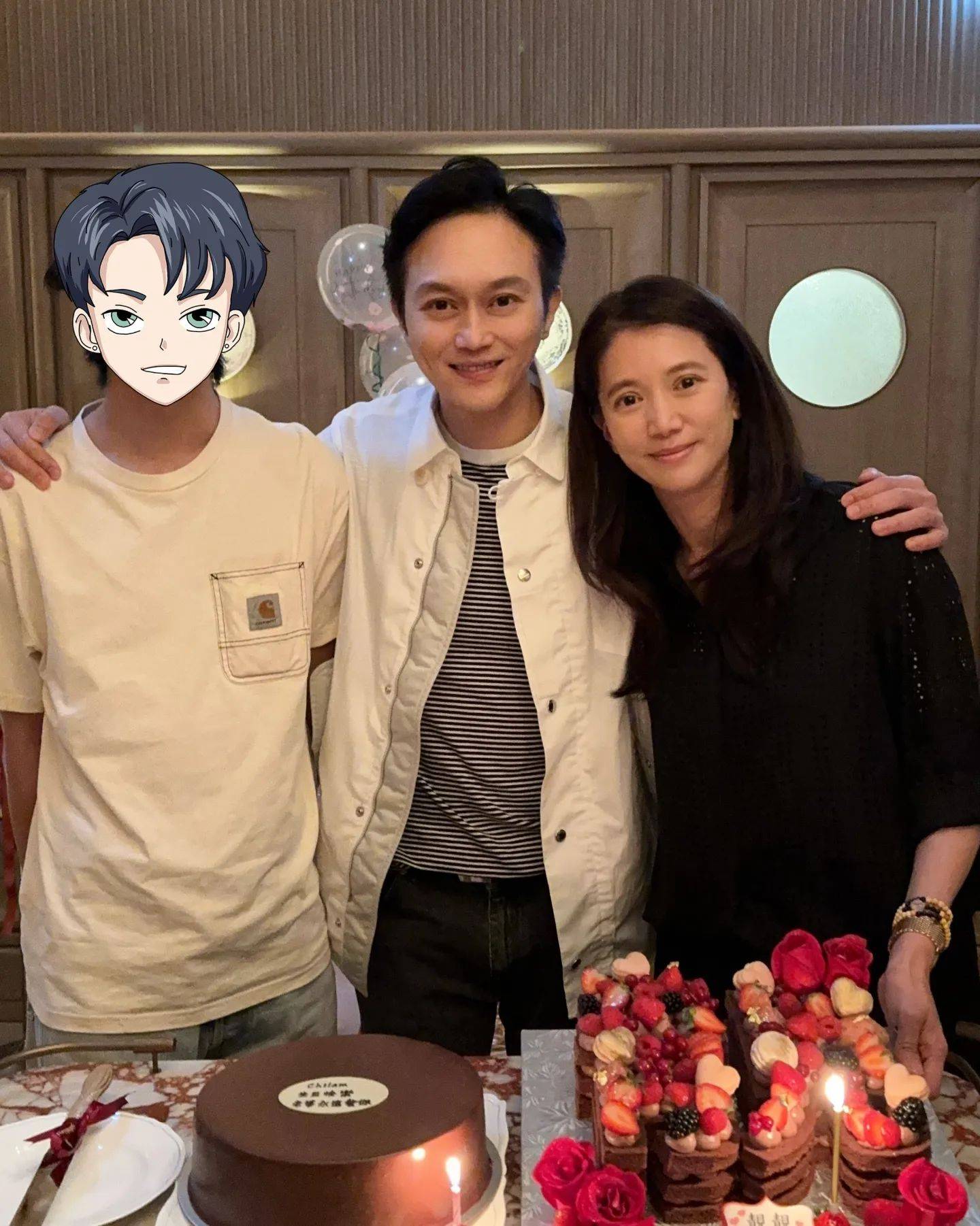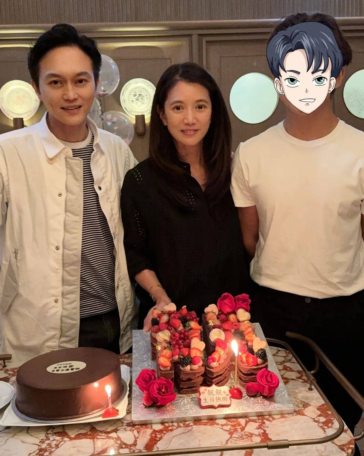 今年11月過完生日就滿18歲嘅Morton,已經同爸爸Chilam一樣咁高,不過喺靚靚post出嚟嘅「全家福」入面,佢就以一個漫畫公仔頭遮住Morton個樣,慎防囝囝嘅近照曝光。靚靚喺帖文中寫道:「好友為我準備了一個親蜜温馨的生日晚餐,感恩你的愛❤️Faye, 謝謝你們送的禮物和美麗的花,祝願我的好友們身體健康💪🏻生活愉快😍。」![]()