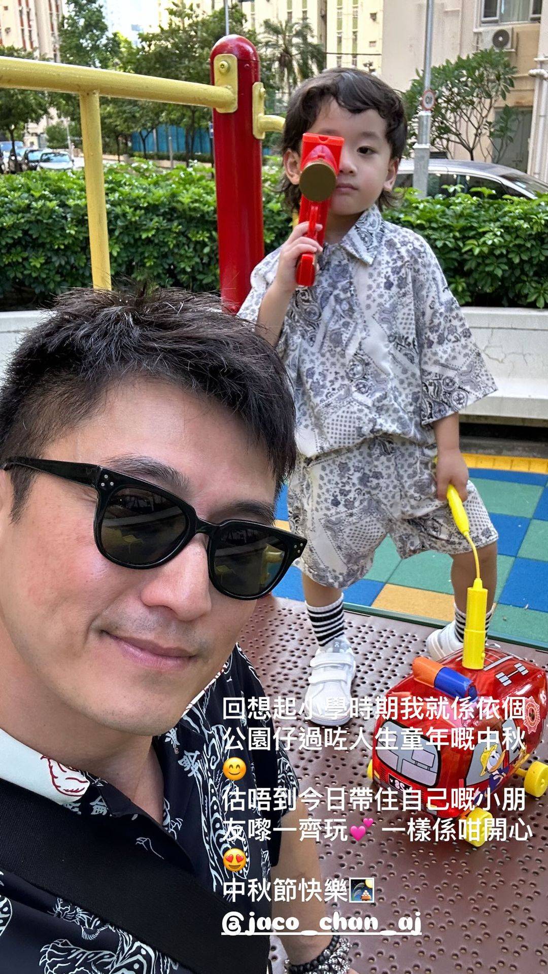 至於山聰就帶囝囝Jaco去自己兒時過中秋嘅公園玩,山聰仲話:「回想起小學時間我就係呢個公園仔過咗人生童年嘅中秋,估唔到今日帶住自己嘅小朋友嚟一齊玩,一樣係咁開心,中秋節快樂﹗」而Fred同太太 何雁詩 亦帶住囝囝感受中秋節氣氛,相中所見Asher表現興奮,更騎係爸爸嘅膊頭四處張望燈籠。