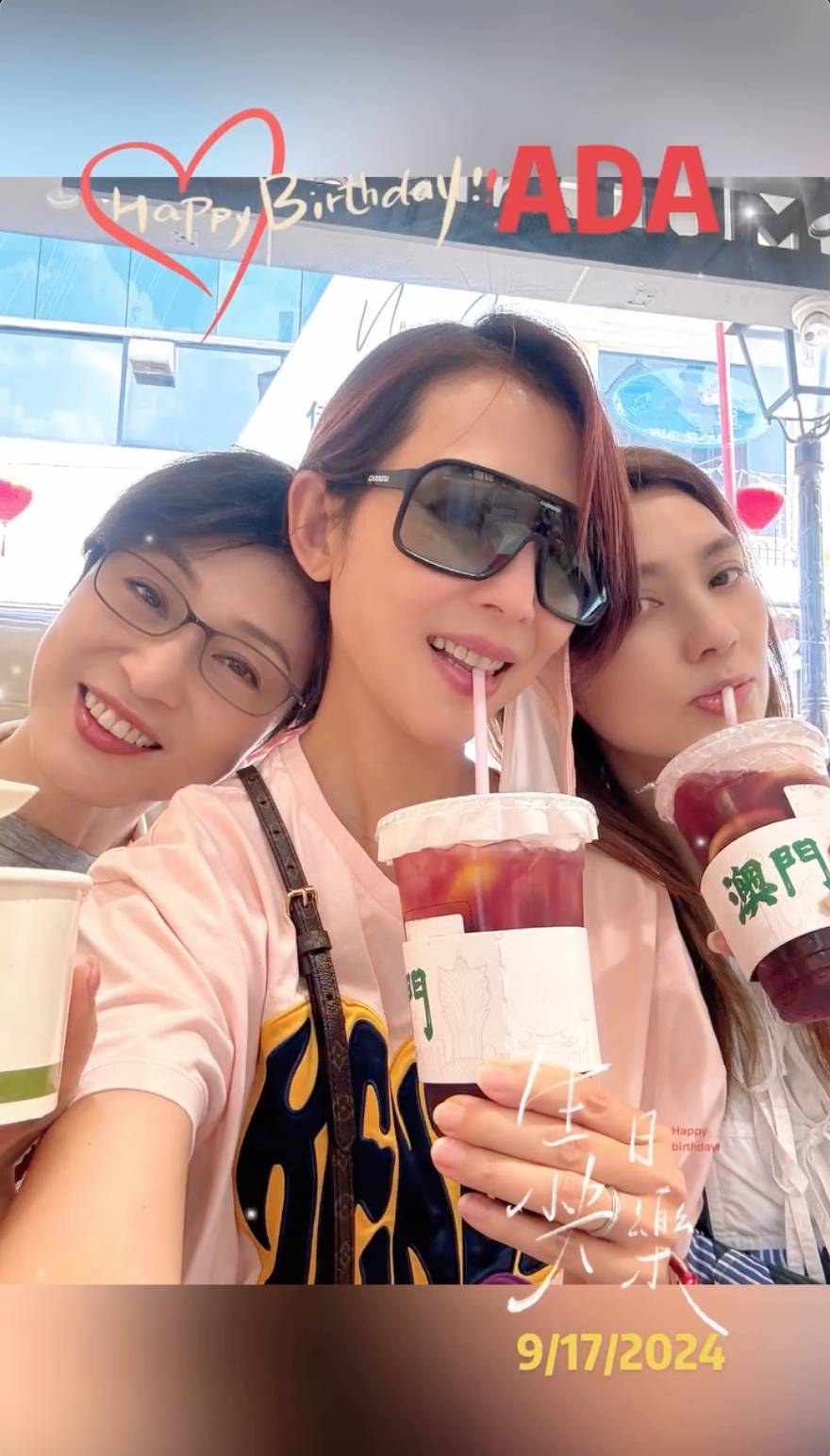 9月17號係 Ada蔡少芬 嘅51歲生日,為咗同好姊妹好好慶生,陳法蓉就決定同洪欣策劃一場說走就走嘅旅行兼生日驚喜,點知畀聰明嘅Ada一早就估到,雖然生日嘅驚喜就咁冇咗,但都冇阻佢哋玩得相當中盡興,三位美魔女喺澳門除咗去咗唔少景點打卡外,佢哋放棄一日嘅身材管理,行到邊食到邊。