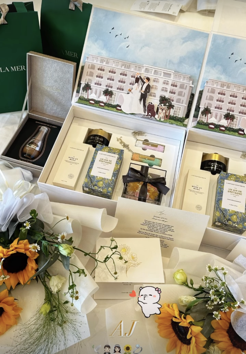 內媒公開場地布置以全白色為主,當中融合以兩人英文名「Joe」同「Alan」設計而成嘅Logo,而一眾賓客同伴郎伴娘團早前已達當地準備,唔止公開豪華飯店內陳設,最重要嘅係送俾勞苦功高嘅兄弟姊妹禮物,又包含佢哋愛情故事嘅簡介。有報道指 明道 同 鄭元暢 將擔任兄弟團成員。