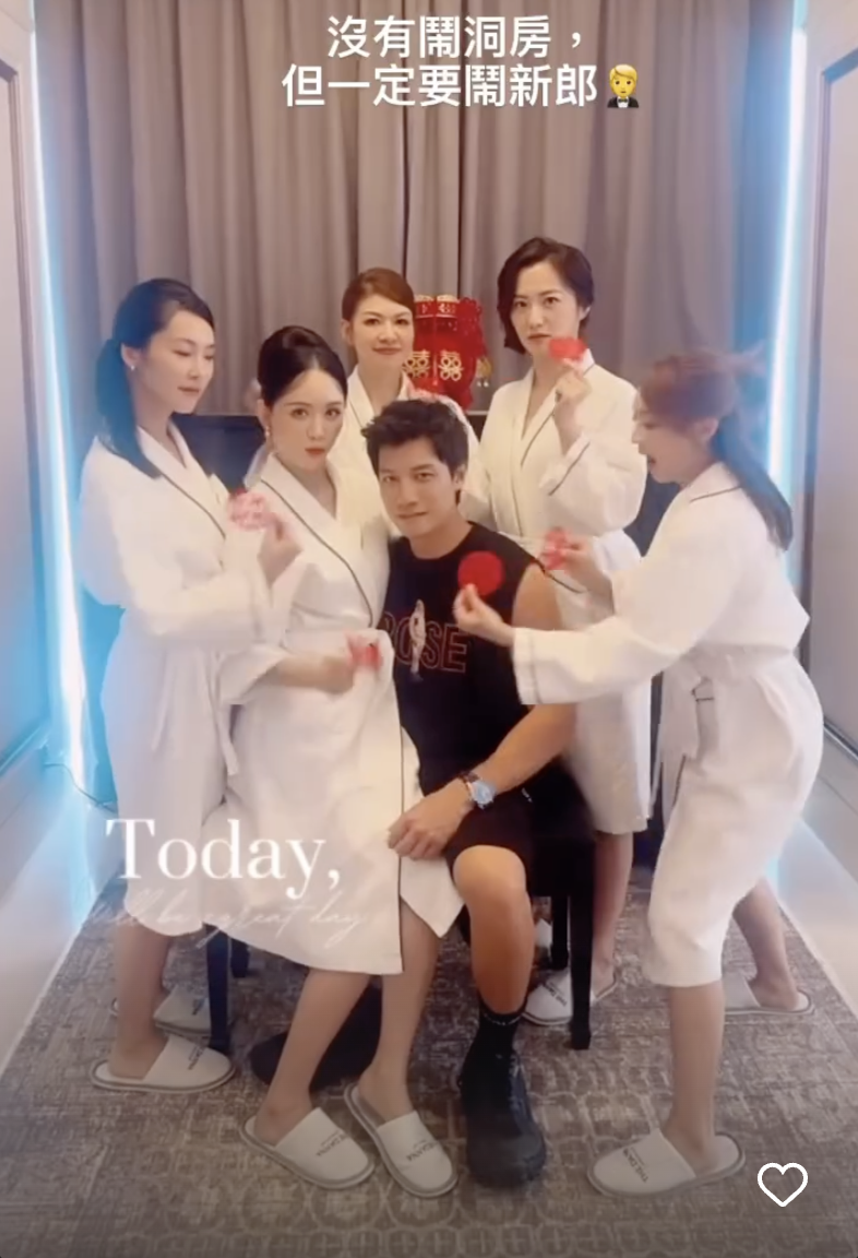 一連串瘋狂放閃Post由噚晚一直延續到今日大婚之時,新娘 陳喬恩 以一襲性感低胸婚紗,由四位姊妹趙小僑、邱緯芬(饅頭)、賴薇如、屈尹潔(小潔)陪伴下正式出閣。雖然一對新人前年3月已經喺台北註冊,不過到呢日先正式舉行盛大婚禮成婚,有當地傳媒指派對將於黃昏起進行,大批親友嘉賓將見證一對新人嘅幸福時刻。