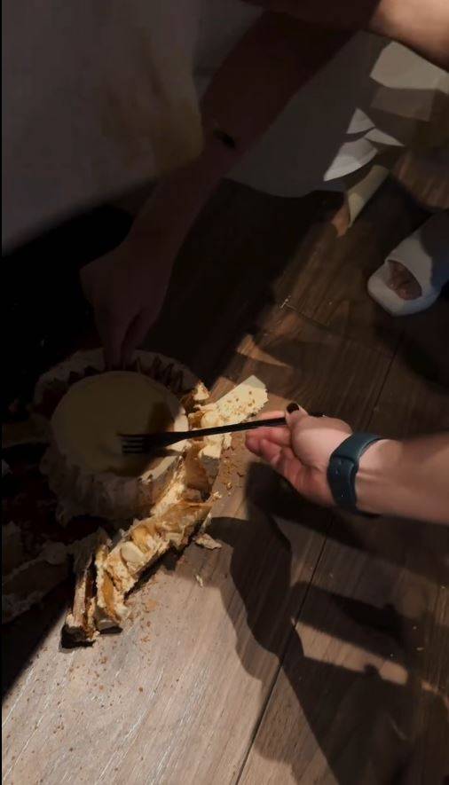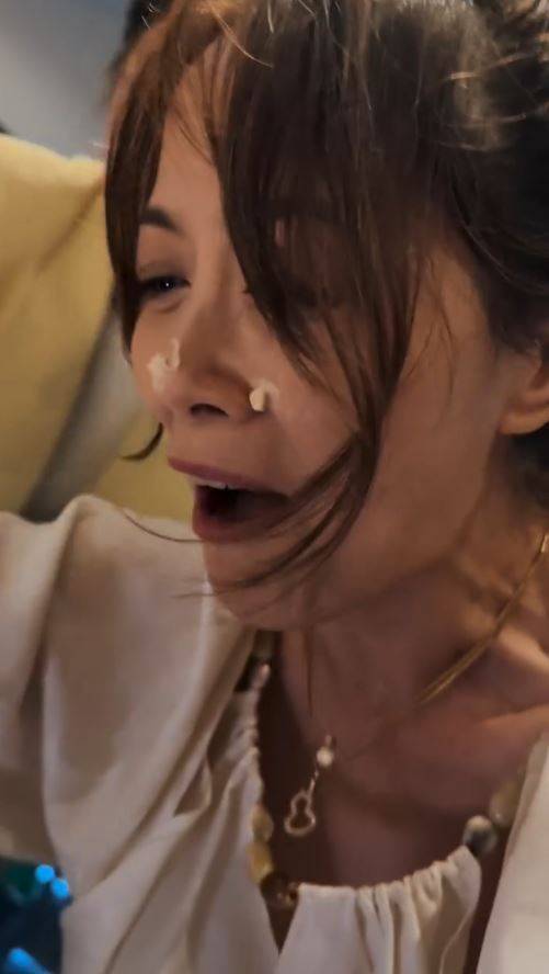 片中見姚樂怡大叫「畀番個蛋糕我」,之後就見佢個生日蛋糕跌咗喺地下,仲見湯盈盈拎隻叉撩咗少少蛋糕嚟食:「仲食得㗎!」畫面見姚樂怡塊面有少少cream,未知係被整蠱嗰陣搞到蛋糕跌咗,定係壽星女唔小心跣手呢!?
