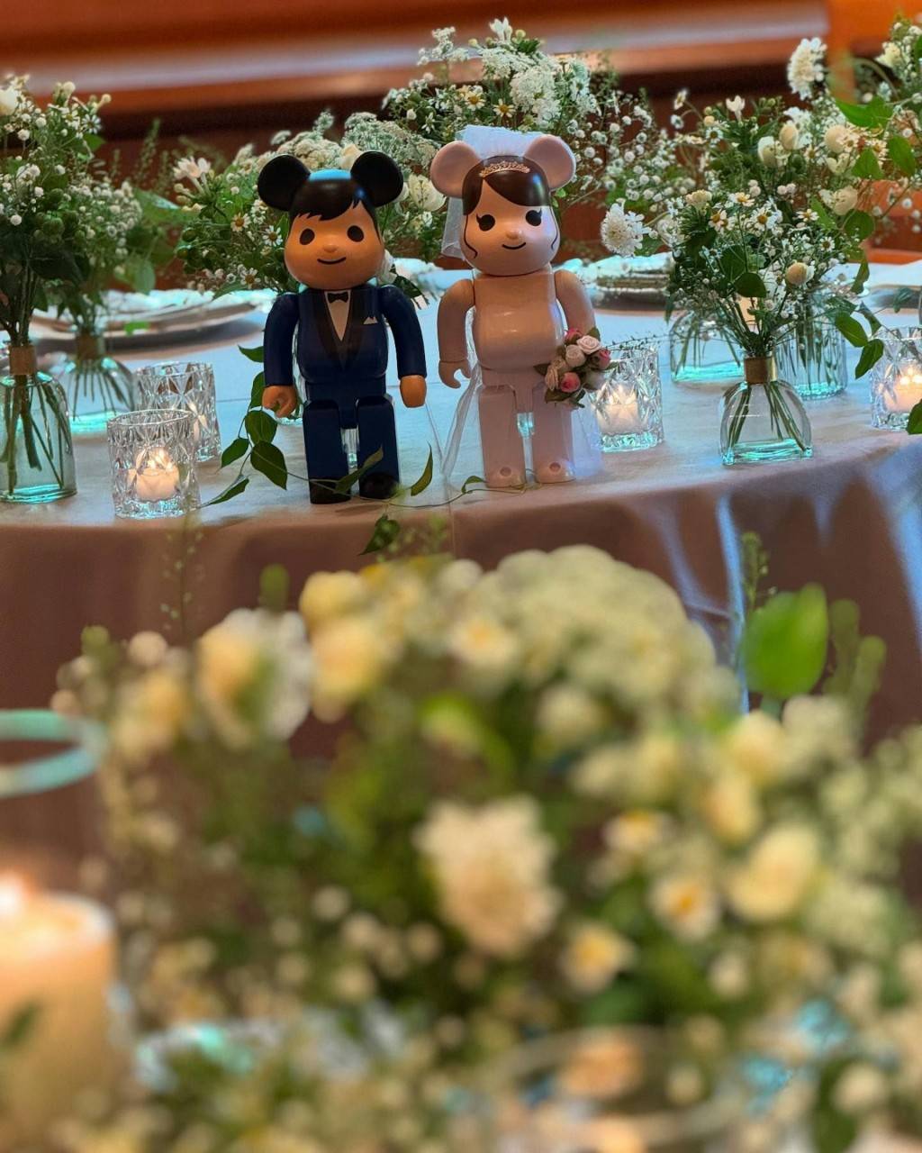 據報道稱有賓客喺社交平台曬出婚禮現場嘅照片,見餐枱以鮮花佈置簡約,蔣家旻事後大方回應婚訊,表示感謝又指要多等幾日先公開啲相。