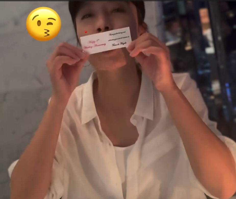 茜堯喺社交平台貼上呢幾張照片同短片後,回味當年留言指:「還是回到熟悉的地方,這裡有美麗的回憶,親切的笑容,美味的晚餐。」仲話係potterywedding(意指陶婚)、週年儀式感、温馨的晚餐。老公子溢公開感激愛妻放閃冧到爆:「多謝你,為我、為小朋友、為呢個家庭嘅付出,我們還有很多個八年,一家人齊齊整整,相親相愛。」字眼中加上多個心心Emoji及同樣地點同樣人物同樣的心。