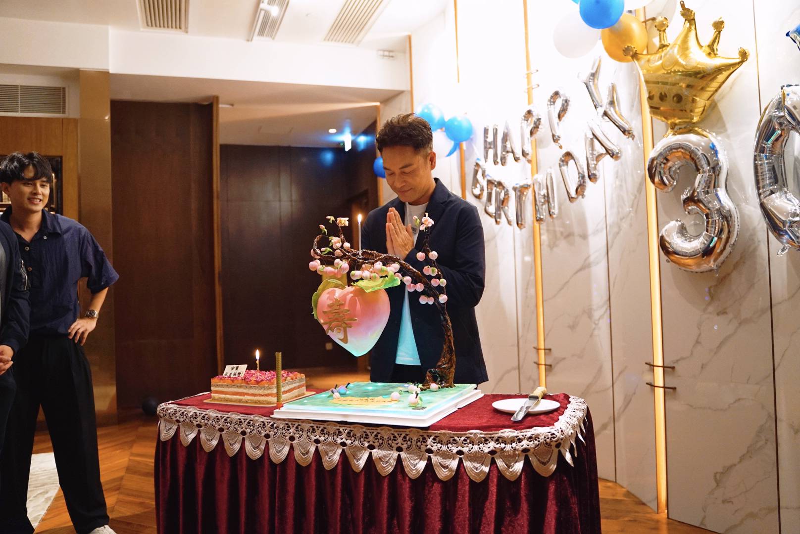 此外,安仔覺得最特別係嗰個壽桃生日蛋糕,影相出嚟係咁靚,呢個靚蛋糕就係佢拍《金式森林》嘅一班仔女送贈,廣沛搵一個朋友去設計,安仔要凌空切蛋糕,笑指又真係唔會跌落嚟。
