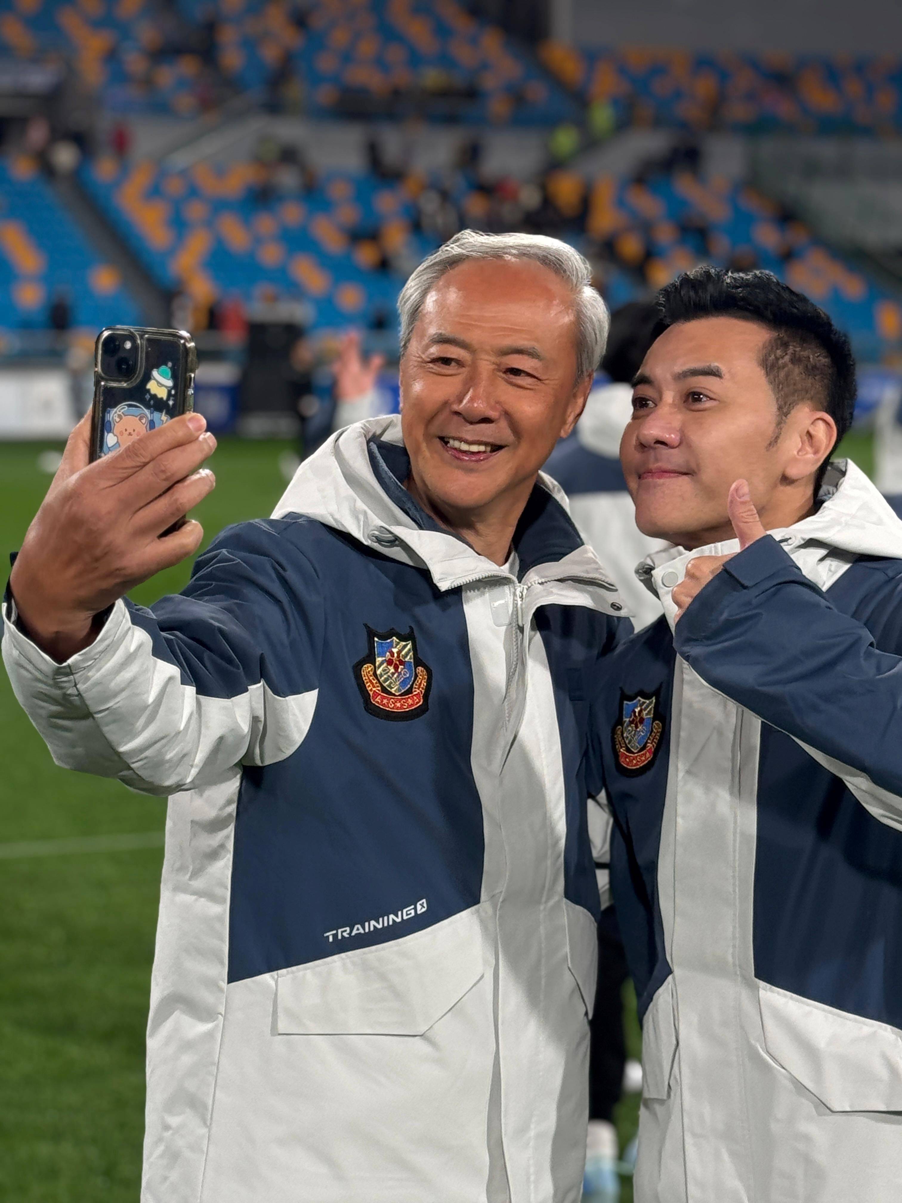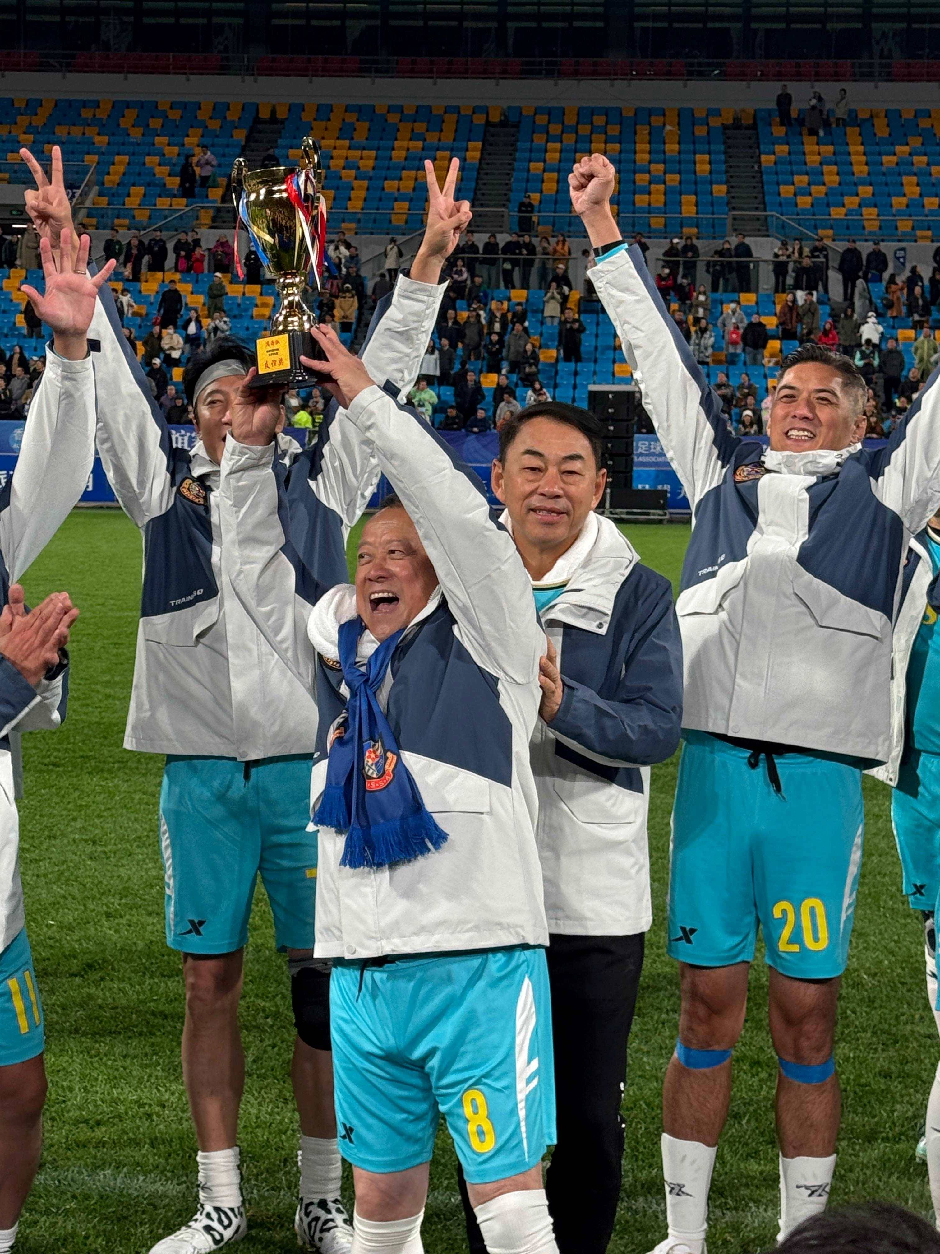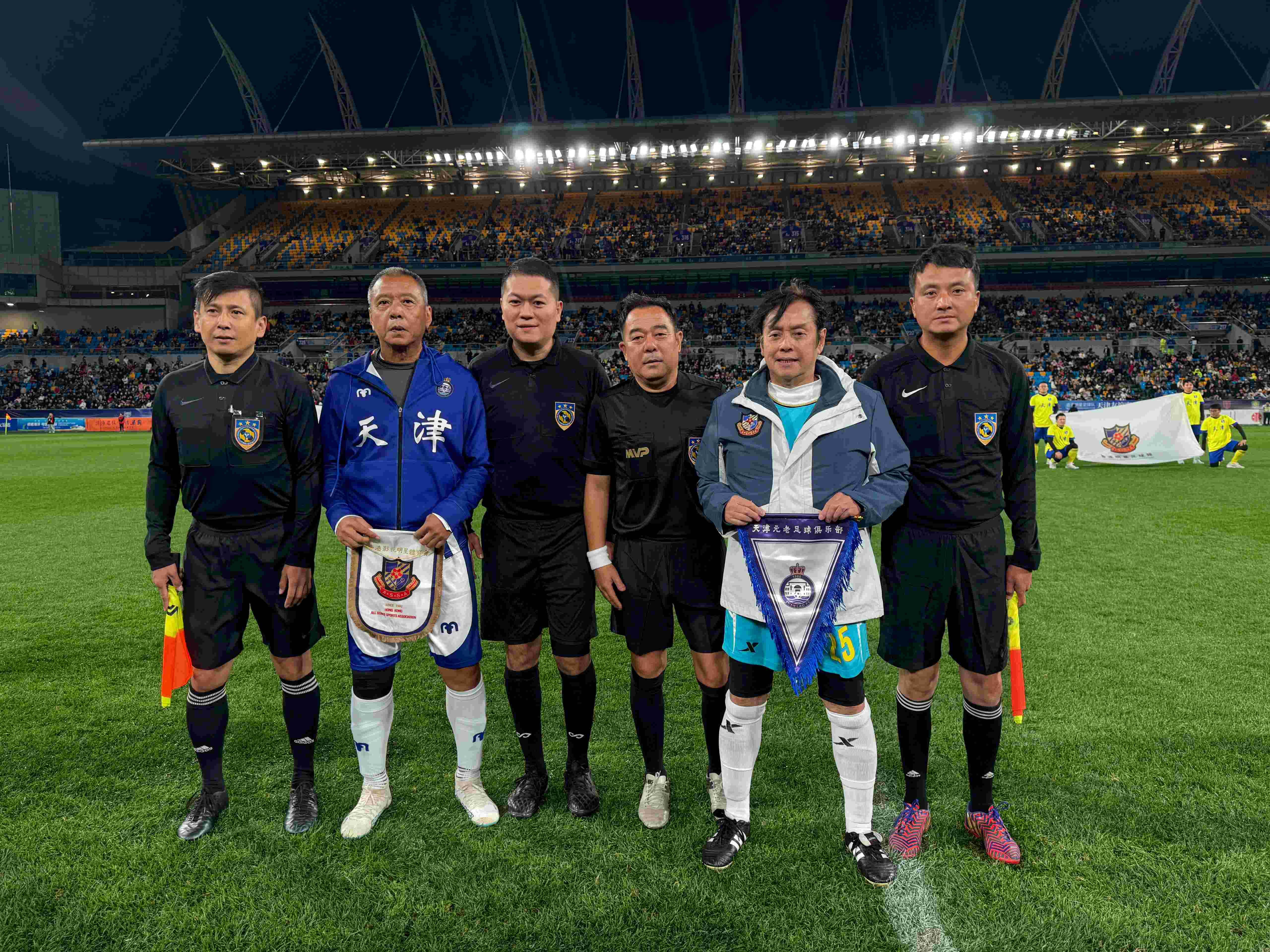 至於晚上面對天津元老隊嘅比賽,明星隊大部份時間以全藝人落場比賽,最終以2比2和氣收場。今次明星隊中場休息嗰陣演唱成為全場焦點,校長譚詠麟「卡拉永遠OK」,近來成為大熱網絡BGM,校長一聲令下,由羅鈞滿、衞志豪、張智軒、伍偉樂又唱又跳新編版本。全隊明星隊隊員伴舞,校長更揮動明星隊隊旗助威,令全場25000歌迷球迷歡呼雀躍,氣氛非常熾熱!