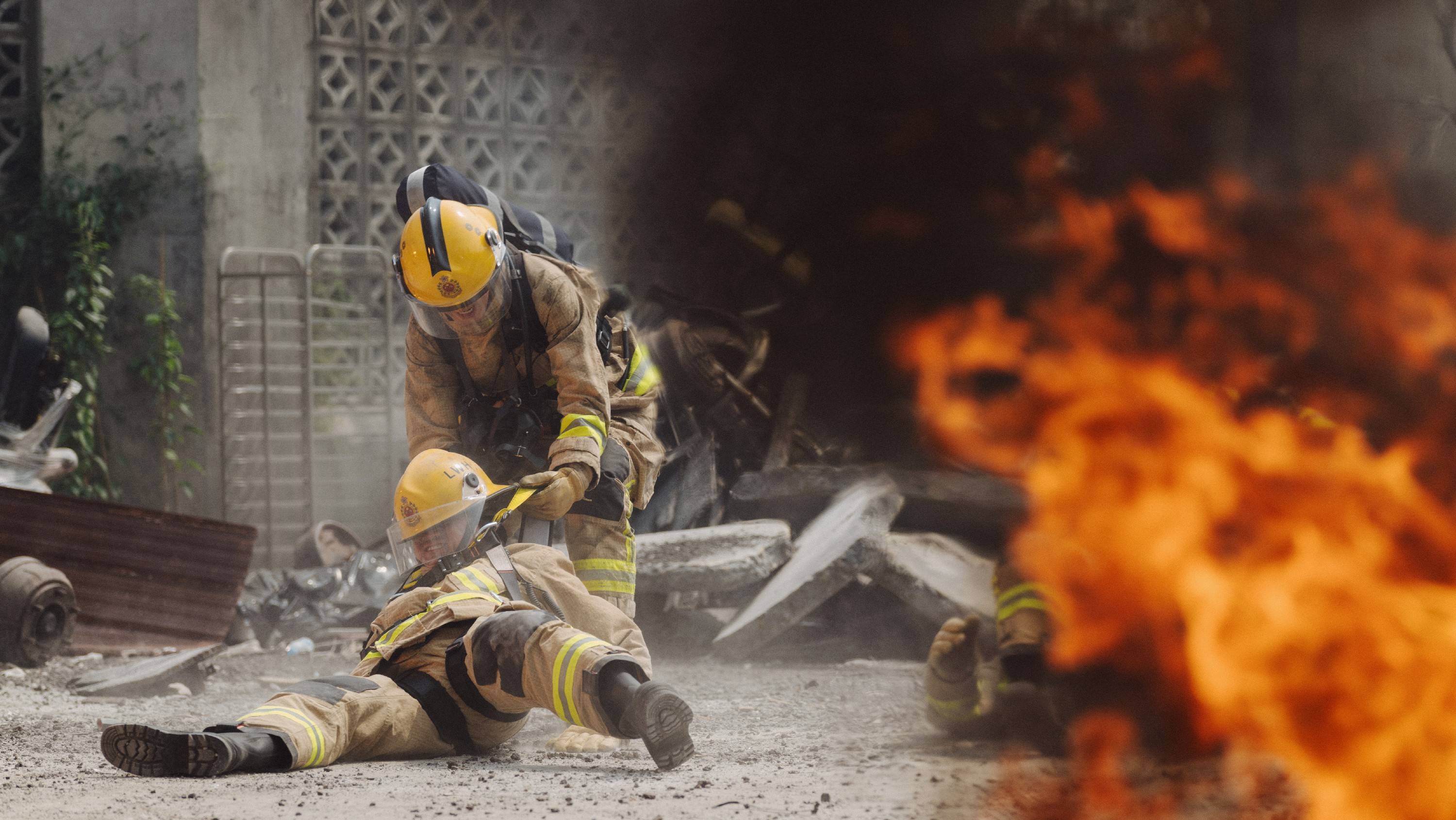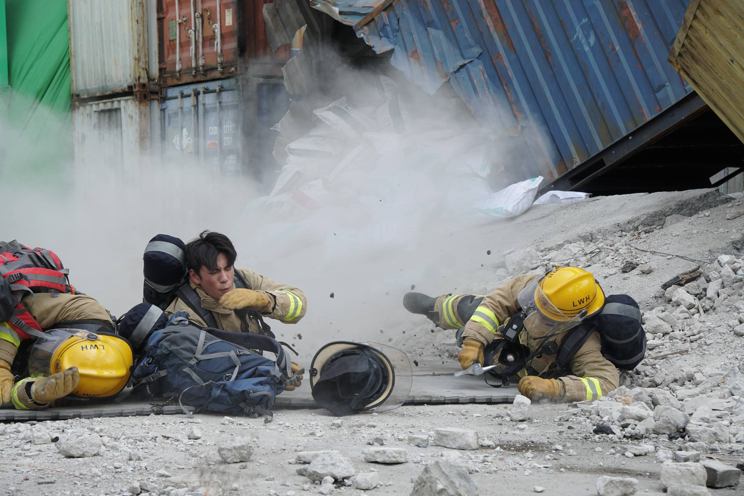 戲中一眾消防員演員需要喺回收場拍攝多場動作戲,對體力、演技絕對都係一等一考驗!白宇、Louise喺其中一場爆破戲需要飛身落地,雖然現場碎石飛濺,但兩位演員全程都係親自上陣。魏浚笙就有一幕需要由貨櫃高處滑落,並喺櫃邊倒吊,拍攝期間雖然吊得雙眼通紅,不過Jeffrey仍然專注完成,展現專業精神。而喺文戲部分,眾人嘅表演極高層次,既表現出常人面對末世困難時嘅恐懼同無助,但更要堅守消防清神為市民奮戰到最後一刻,展現消防員無畏無懼一面。