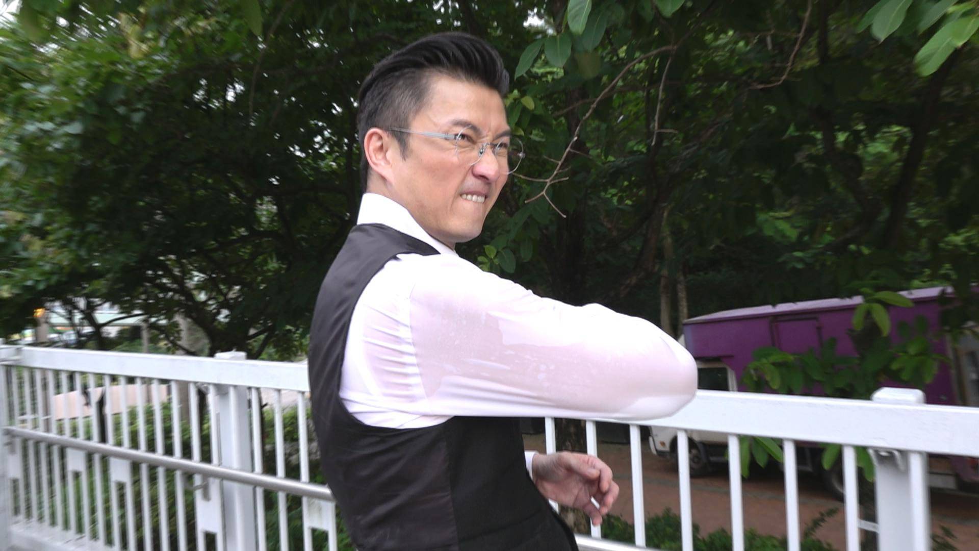一連五集嘅台慶劇《廉政行動2024》話咁快就嚟到最後一集,陳山聰率領鄭俊弘等人追捕徐榮,又要喪跑,又要半身攀爬出天橋邊,捉住將近跌落橋嘅徐榮,場面刺激又緊張,拍攝呢場戲時正正係炎夏,山聰一身斯文西裝Look加馬甲上陣,見佢企喺戶外幾乎全身濕透,難怪山聰話動作戲對佢來講冇難度,反而面對天氣係最大考驗,更笑言自己唔後生,太熱真係會頂唔順,幸好最終都順利完成拍攝。