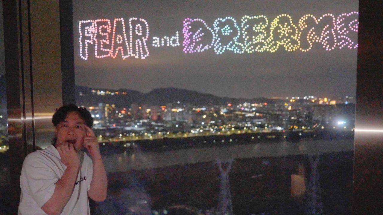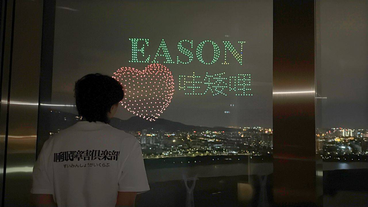 日前抵達福建泉州嘅Eason,接獲酒店窗外有表演嘅通知,完全冇預計到窗外竟然出現800架無人機,顯示演唱會主題「Fear and Dreams」字樣歡迎佢到泉州。之後無人機又排列出太空人裝,舞台上嘅長鼻木偶同紅藍汽球等花樣,令佢睇到目不暇給,仲不停打卡留念。