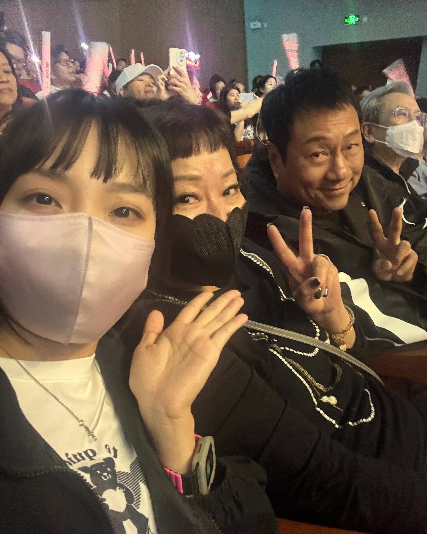 祥仔老婆今日喺社交平台上載當日嘅影片,眾人一見面已熱情打招呼兼開心影大合照,祥仔為佢哋打氣,祝佢哋good show,又笑住同阿廉講多謝邀請,話出面好難買飛,祥仔睇騷都好投入咁揮動手燈,而身旁就係阿廉外父姜大衞(John哥)。