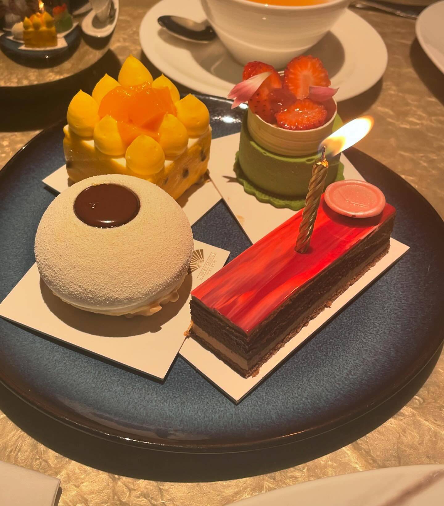 雖然最近Jasmine透露簽咗模特兒公司,仲積極做運動keep fit,不過生日呢啲特別日子當然係Cheat day啦,呢晚除咗生日大餐外,胡慧中同何志平呢對廿四孝父母,仲為愛女準備咗多個精美嘅小蛋糕同佢慶祝,睇相都覺得好食呀!![]()