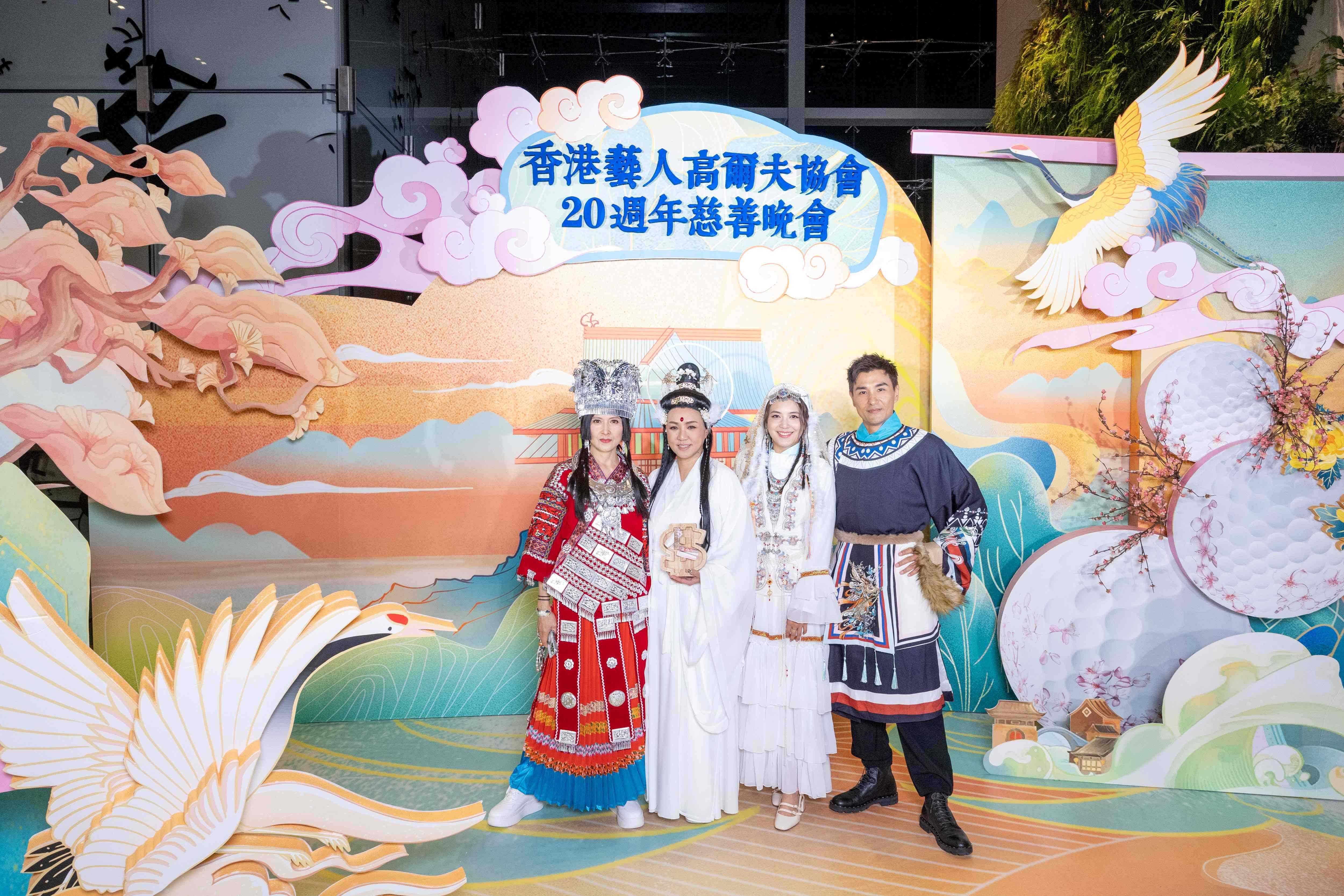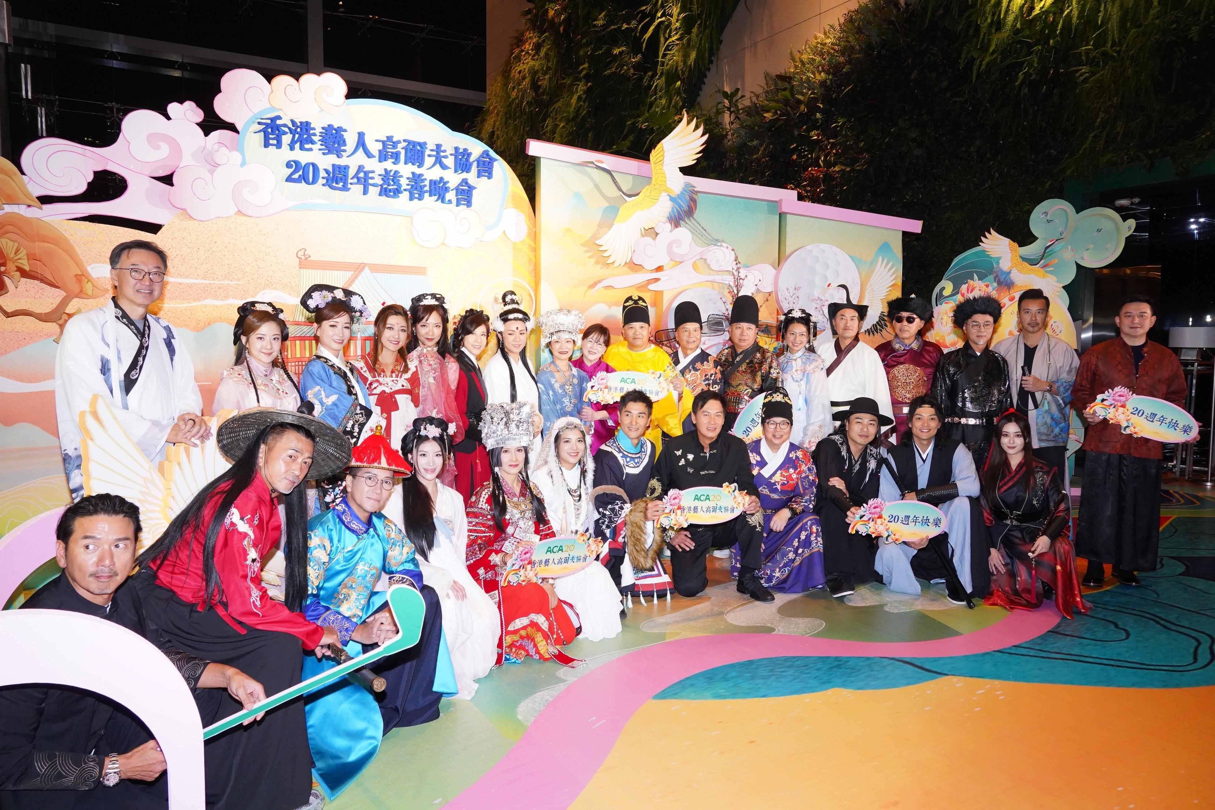 香港藝人高爾夫協會(AGA)今年成立20周年,近半百位星級會員及嘉賓踴躍支持晚會,齊心共襄善舉。呢晚大玩「古裝」主題似足穿越時空咁,場面非常熱鬧,出席有黎瑞恩(小恩子)、陳展鵬、蔡一智、蘇志威、鄭希怡、林漪娸、單文柔、鄧兆尊、劉丹、滕麗名及郭佩文等,筵開28席,全場超過三百位善長仁翁。