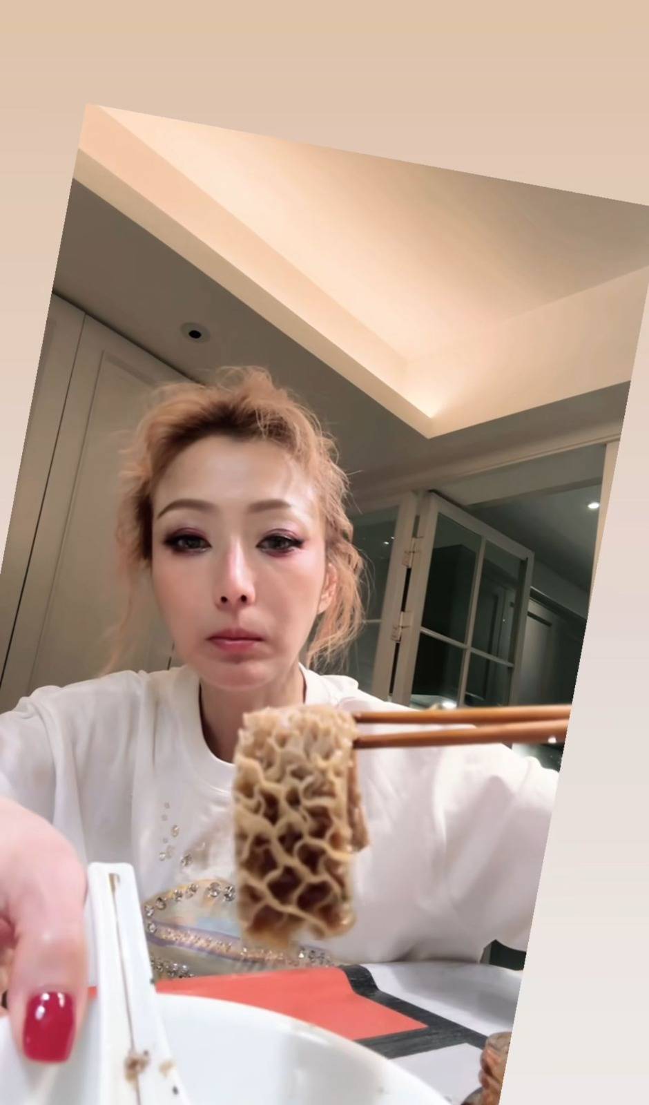 而撐完華仔場後,Sammi就去咗街坊店買牛雜同牛腩返屋企,同老公許志安一齊撐枱腳,見Sammi食得津津有味,仲同安仔講:「呢個都好食呀,都入味。」而同枱嘅安仔亦都回應:「好食呀﹗」,仲問Sammi有無比埋辣椒醬? 睇嚟兩口子對今餐嘅牛腩宵夜好滿意噃。