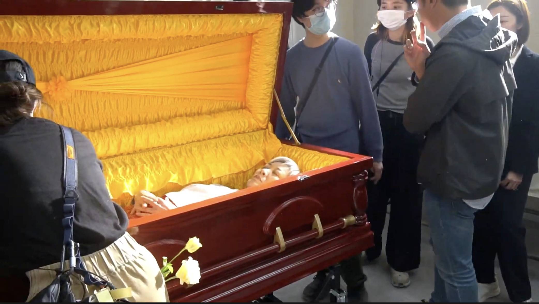 金燕玲於場景中亦親自躺入棺木「演出」,一直忍氣力求逼真完成。呢場戲亦係佢嘅煞科戲,事後佢更感觸落淚話:「我係一個好感性嘅人嚟嘅,可以參與到今次工作,我哋付出少少,同到後生一輩合作幫到佢哋,我都覺得係一件好值得嘅事。」![]()