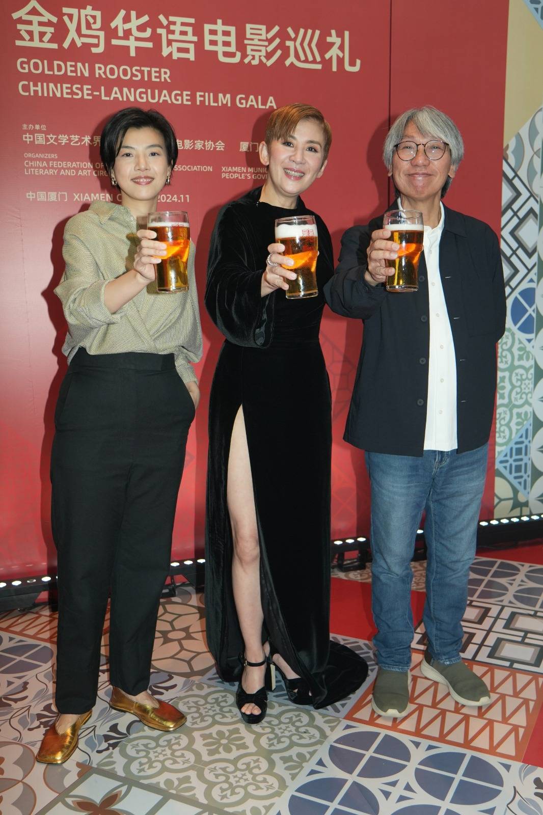君如同導演何妙祺、監製陳慶嘉15號一抵達廈門,隨即亮相「金雞華語電影巡禮」紅地氈,仲現場示範如何調教戲中嘅海鹽啤酒,非常有心思,最後三人更碰杯預祝電影大賣。![]()
