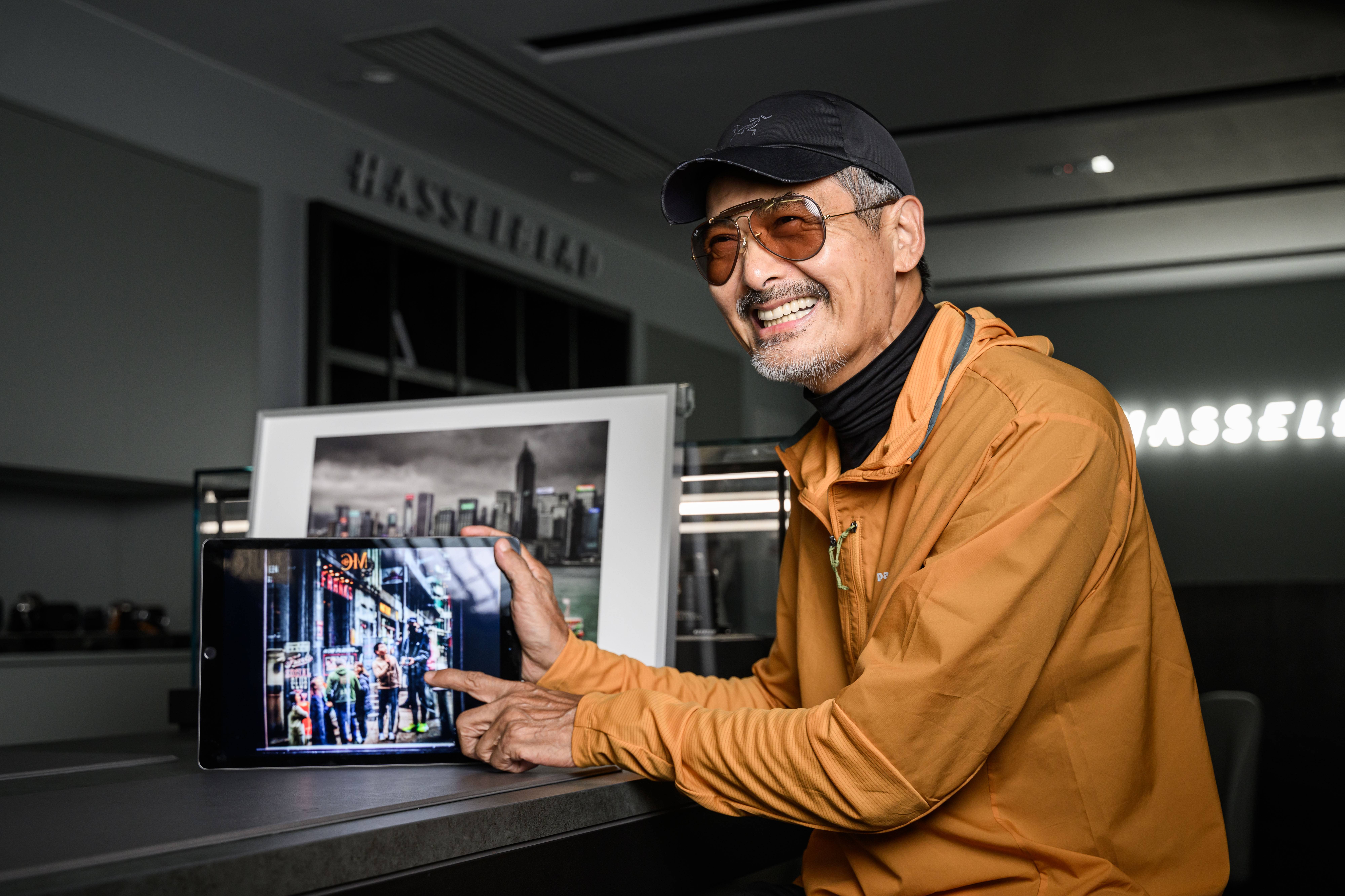 發哥笑稱自己拍攝時就好似「打雀」(雀鳥攝影),預先想好構圖,設置好相機腳架後,耐心等待路人踩中佢嘅「圈套」(對焦點)即按快門;而大光圈讓佢可縮短快門速度,捕捉最合適感覺嘅瞬間。 發哥講起攝影嗰陣,眼眸中閃爍住興奮嘅光芒,佢樂於分享每幅作品背後嘅故事。展覽中嘅主要作品《無題》係一張喺黑雨中拍攝嘅維港照片,當時佢喺海港城嘅露天停車場,捕捉到對岸陰沉天色與未亮嘅燈光,與三艘顏色各異嘅天星小輪形成鮮明對比。發哥覺得呢啲機會非常難得,咁就係攝影嘅魅力。