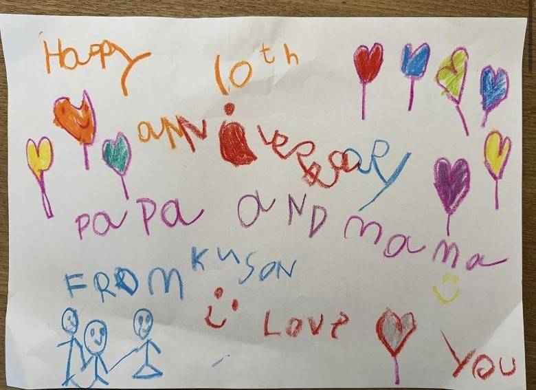 基仔坦言兩公婆過去幾年比較低調簡樸咁過每個周年紀念, 即使今年係10周年, 本身只係想三口子小慶祝,因阿仔Kuson「好想去爸爸媽媽個婚禮」呢個可愛要求,基仔決定辦一次似Wedding嘅10周年聚餐,讓一家三口充滿愛嘅晚上。