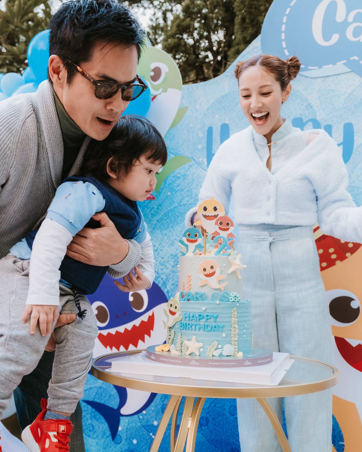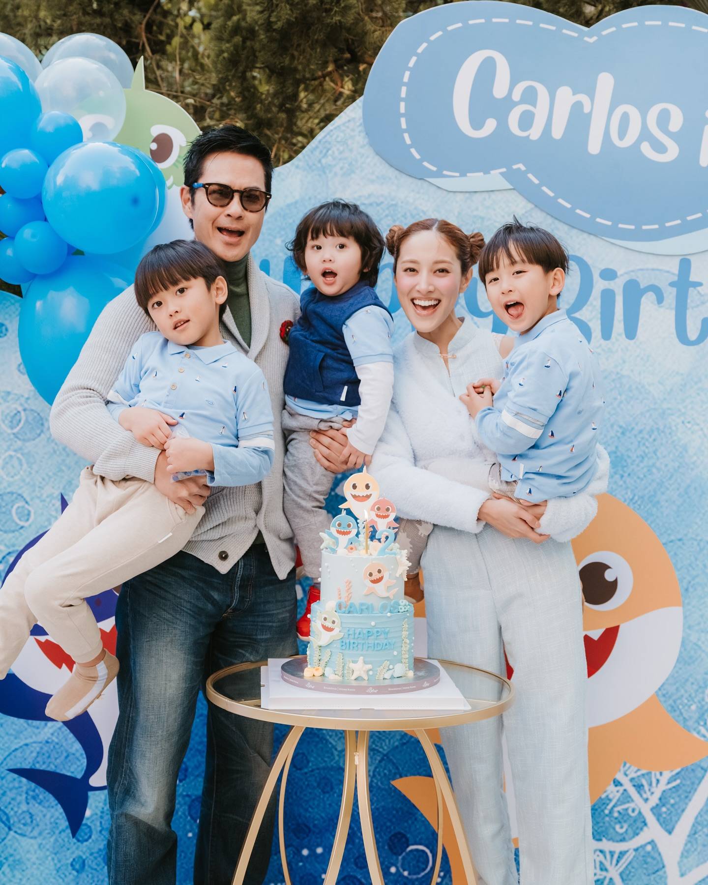 2013年港姐冠軍陳凱琳(Grace)近年轉型做KOL,吸金力非凡,Grace亦積極經營佢嘅家庭生活,啱啱先一家人去咗沖繩過新年,最近又為細仔Carlos(鄭承太)搞派對慶祝兩歲生日。每次Grace精心為兒子設計生日派對主題,呢次以Baby Shark為主題,Grace為三個兒子換上粉藍色靚衫,配合全場粉藍色主題,而佢同老公鄭嘉穎亦襯咗情侶裝,好姊妹龔嘉欣同譚凱琪亦有到場。