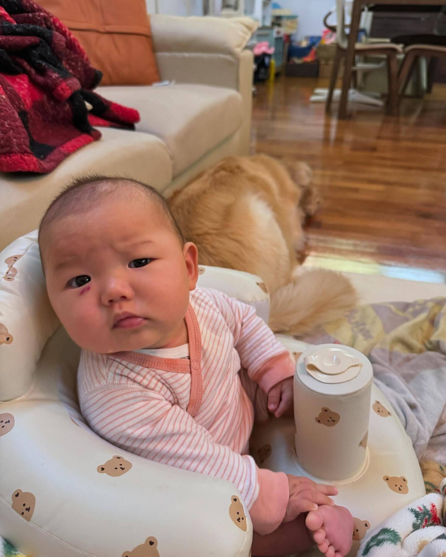 Inez喺社交平台貼出一張手抱細女Beryl嘅相,見細女Beryl眼肚位置貼咗一塊小紗布,似係啱啱接受完治療,Inez話要好好紀錄先再同大家分享。