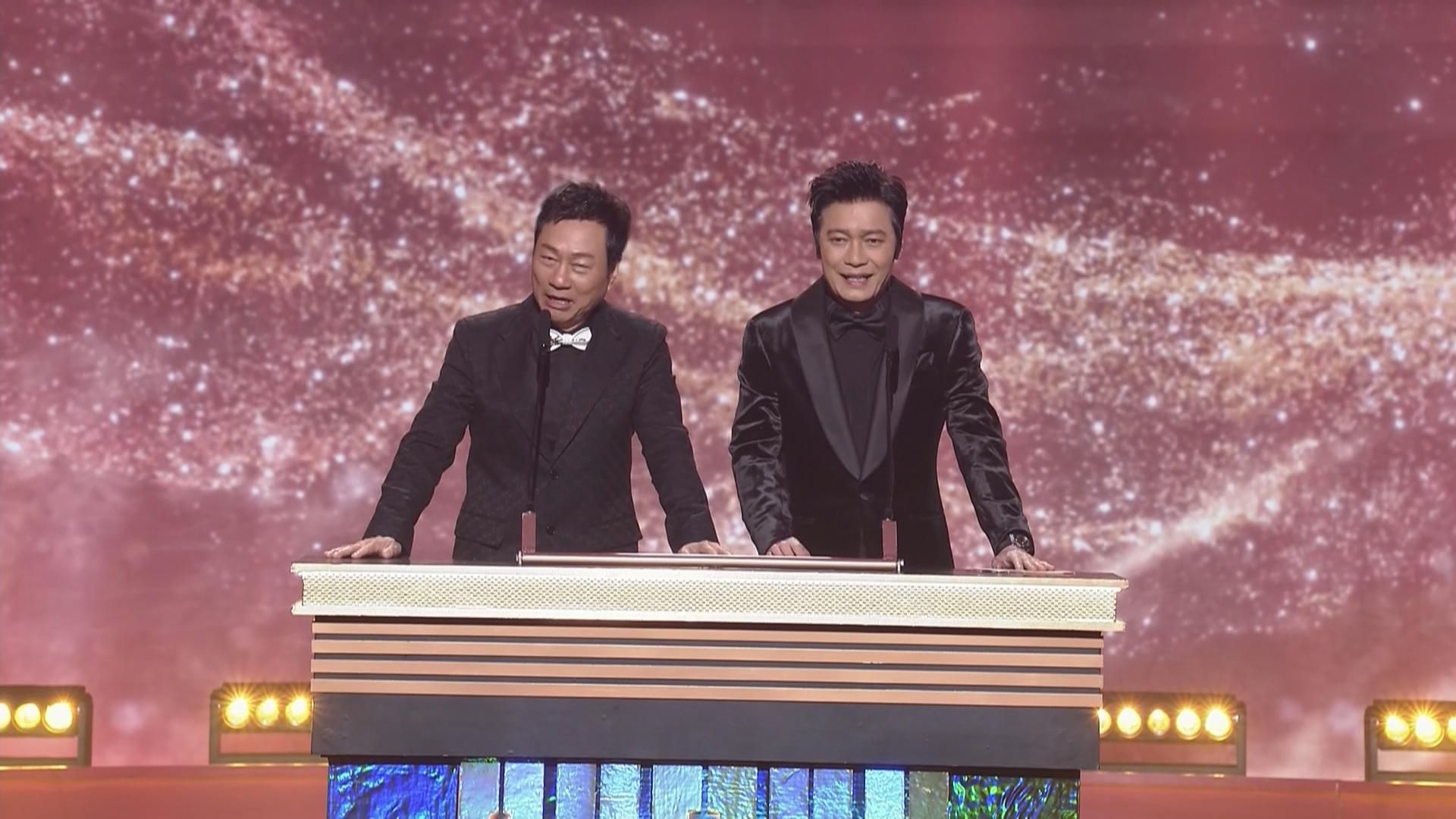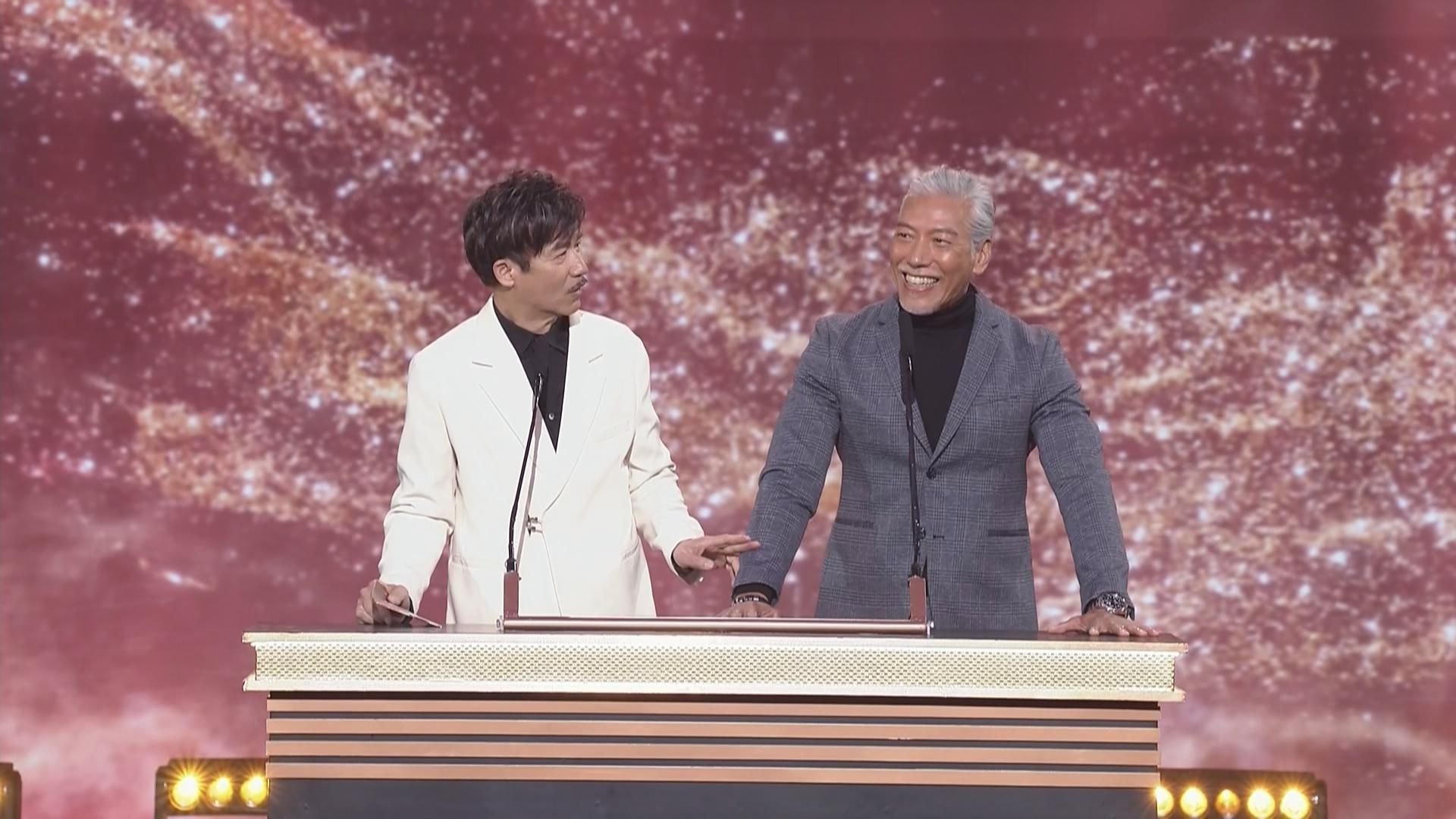兩位三屆視帝紀錄保持人羅嘉良同黎耀祥則一齊揭曉今屆視帝,雖然祥仔都係今屆視帝候選人之一,但佢就話喺台上並唔緊張,仲話有嘉良呢位老朋友喺身邊就已經夠放鬆,佢又指因為當年大家合作咗好多套劇集,當時大家食飯瞓覺都幾乎一齊,所以相信熟稔。![]()