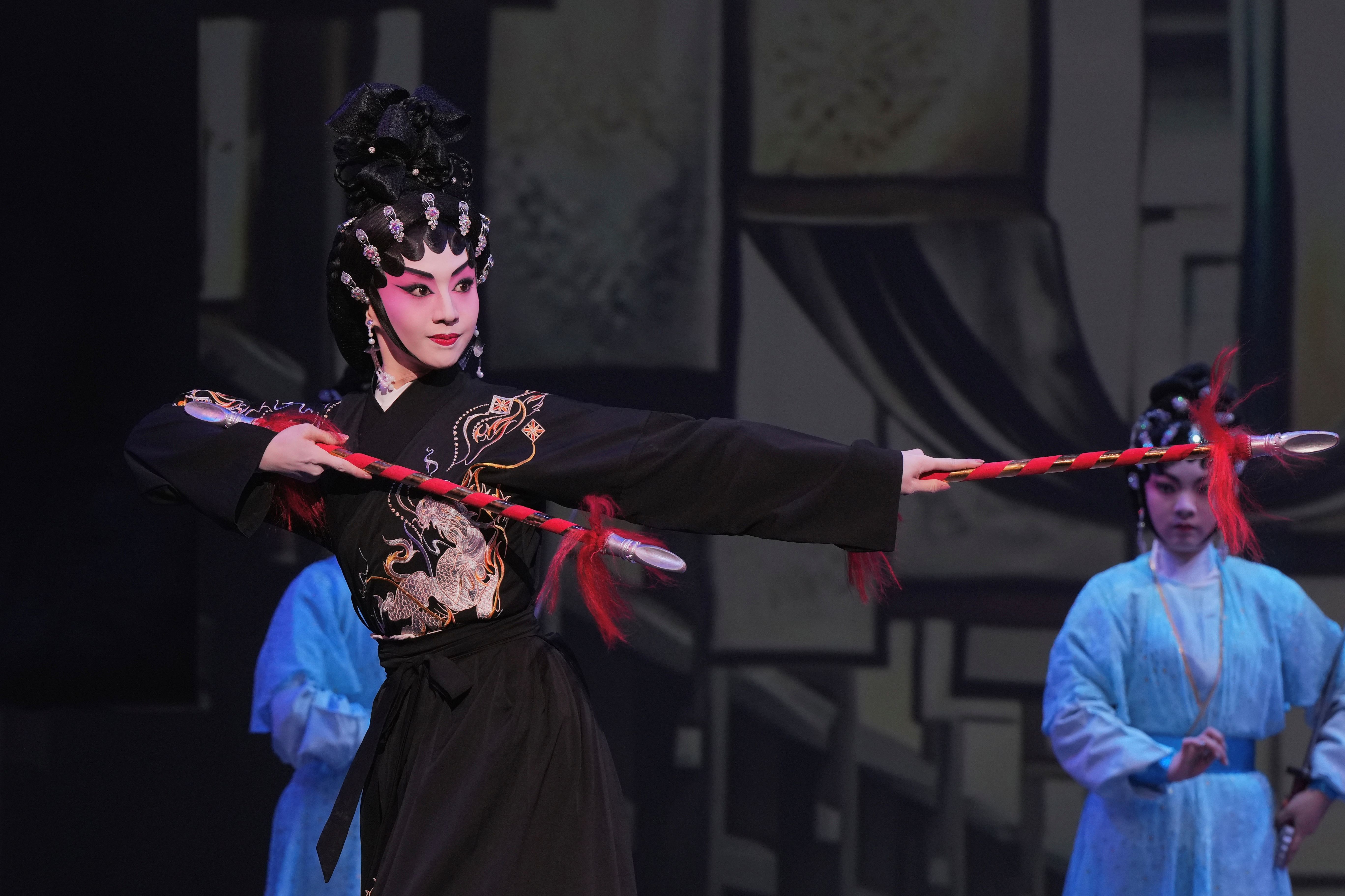 花旦梁非同就偕梁燕飛同曉瑜共演被喻為粵劇版《東方三俠》嘅《劍膽紅袖除奸宦》,大展刀馬旦功架,三位刀馬旦打頭陣出場,戲服令觀眾眼前一亮。近日身體抱恙嘅梁非同,幸未有影響演出。![]()