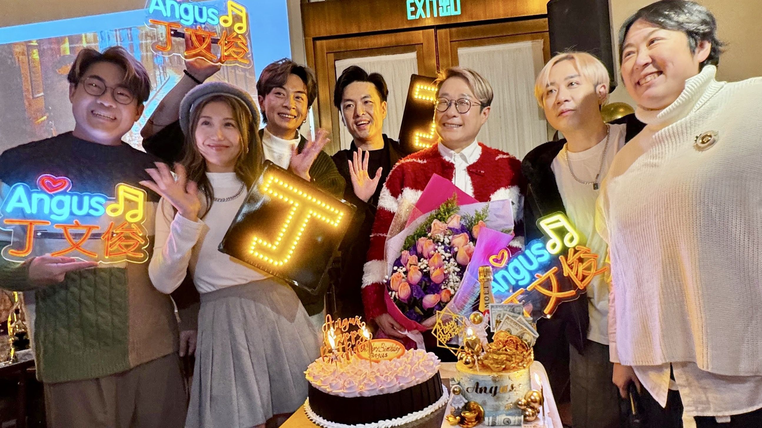 丁文俊 日前同Fans親友預祝1月28號生日,一班「中一」老友 羅啟豪 涂家堯 顏志恆 魏嘉信 支嚳儀 陳早怡 林鉫徫 仲有演員 徐偉棟 參與齊齊慶祝。Angus即席為大家獻唱好歌,又同幾位歌手老友合唱,答謝「愛丁寶」嘅支持,節目中曾擔任Angus導師嘅 韋綺姍 亦現身派對,向愛徒派利是祝賀。