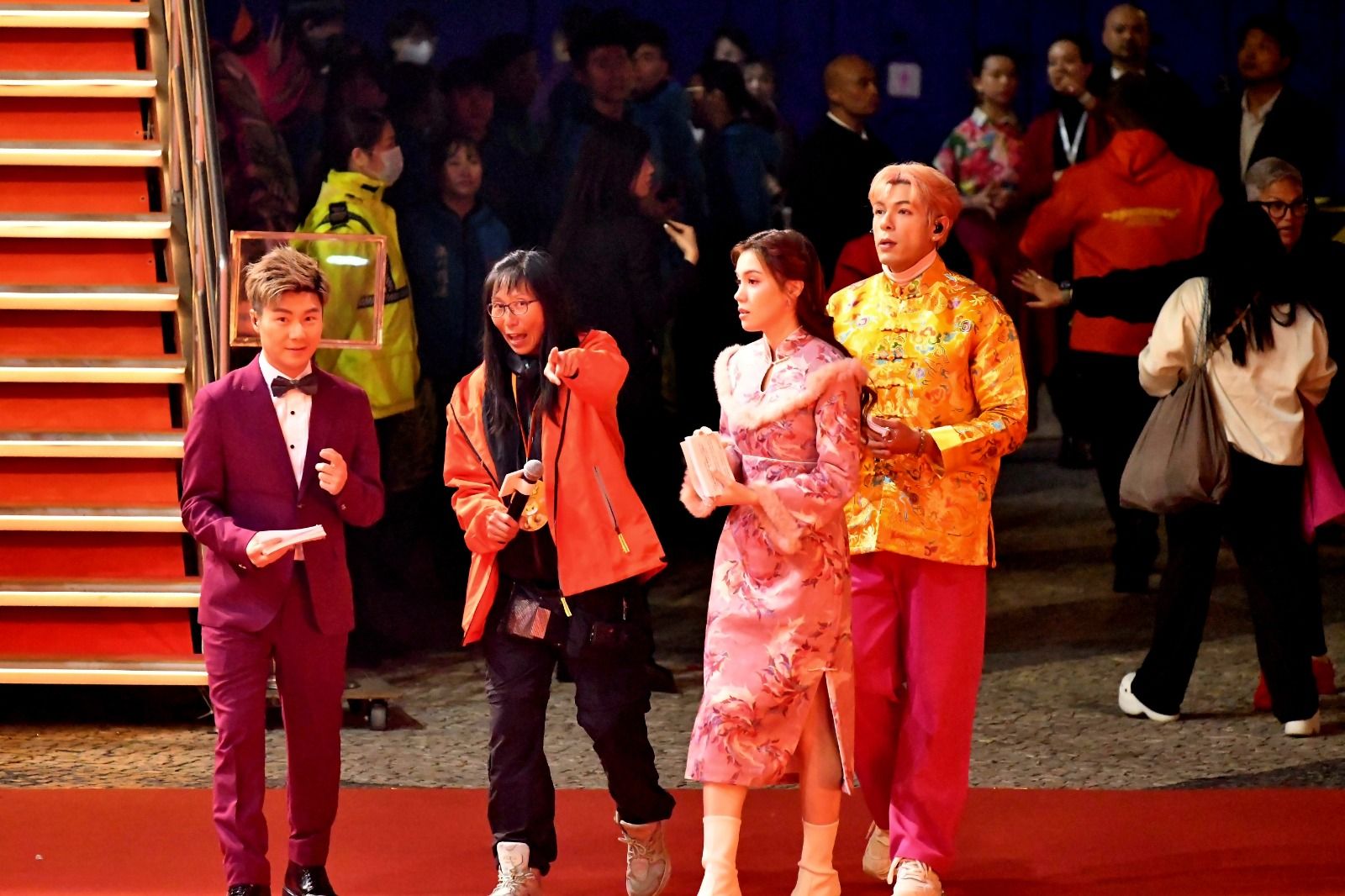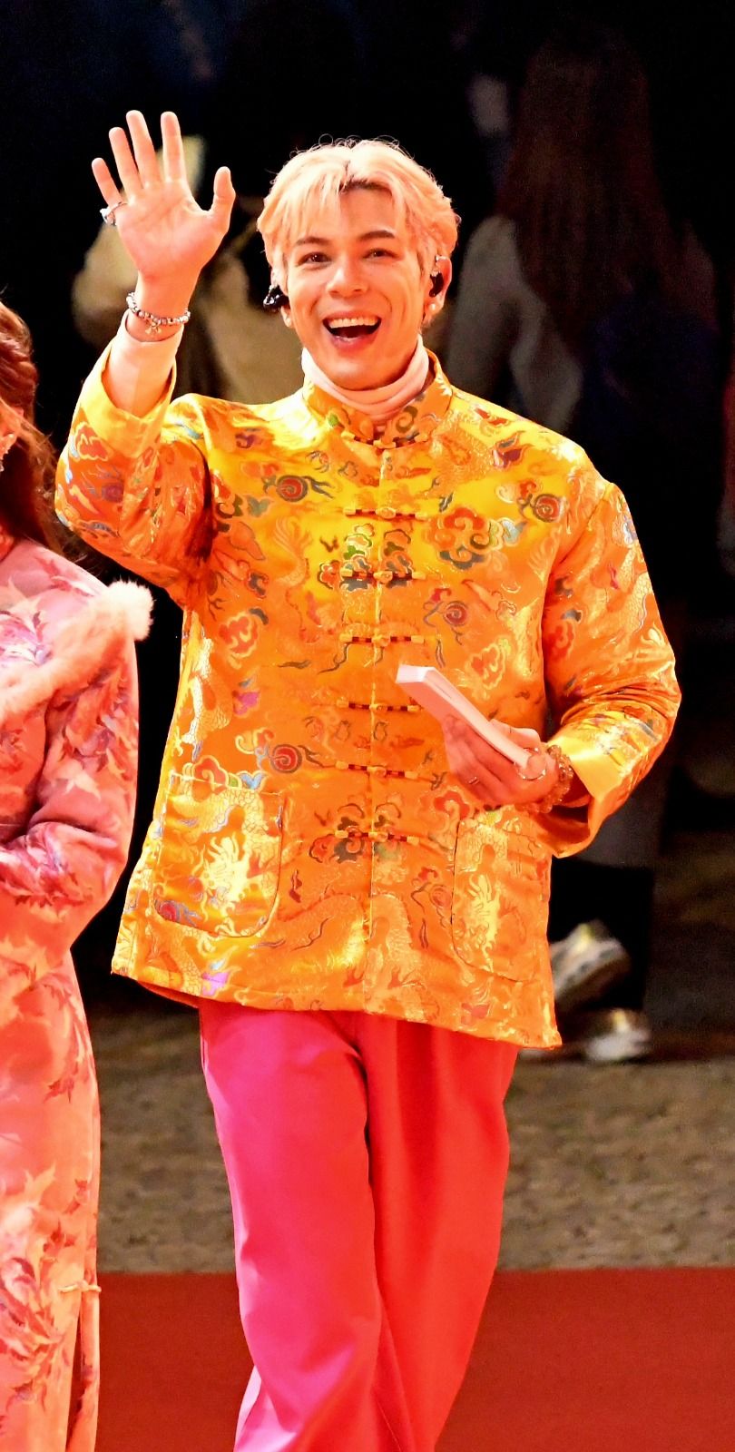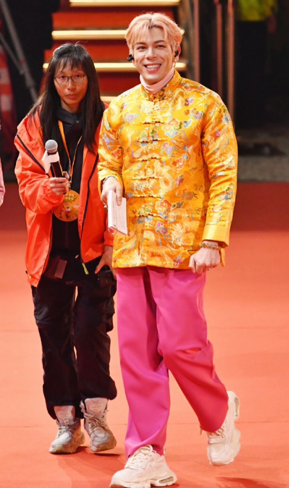 German一向有時尚觸覺,大年初三佢就著得非常鮮豔,配襯出節日喜氣洋洋嘅氣氛。好似喺表演環節時,佢就著上一套鮮桃紅套裝配以長珠鏈,而配合司儀身份,German就換上金黃色中國錦繡上衣配襯一頭粉紅色頭髮,耀眼醒神,既保留中國傳統特色又極具時代感。![]()