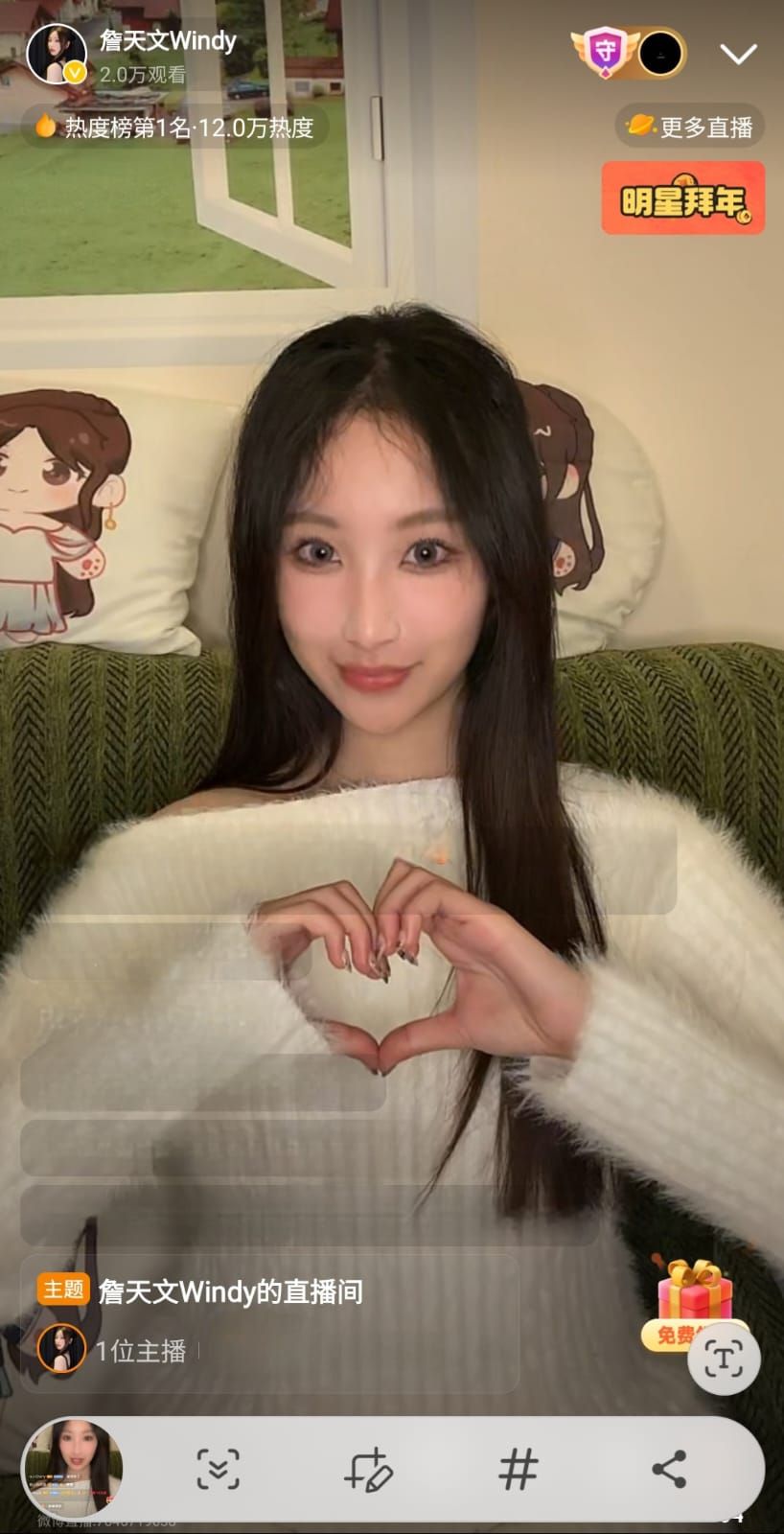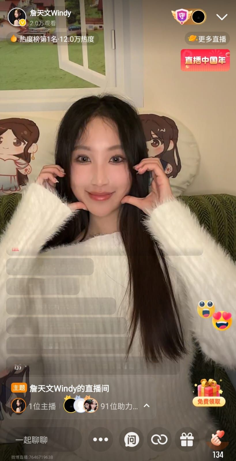 聲夢小花詹天文(Windy)日前首度喺微博開啟個人直播,短短一粒鐘即吸引逾2.1萬名觀眾在線支持,衝上平台即時熱度第一位,粉絲互動反應熱烈,呢次直播係Windy與樂迷久違嘅線上相聚,更展現佢積極拓展內地市場嘅決心。