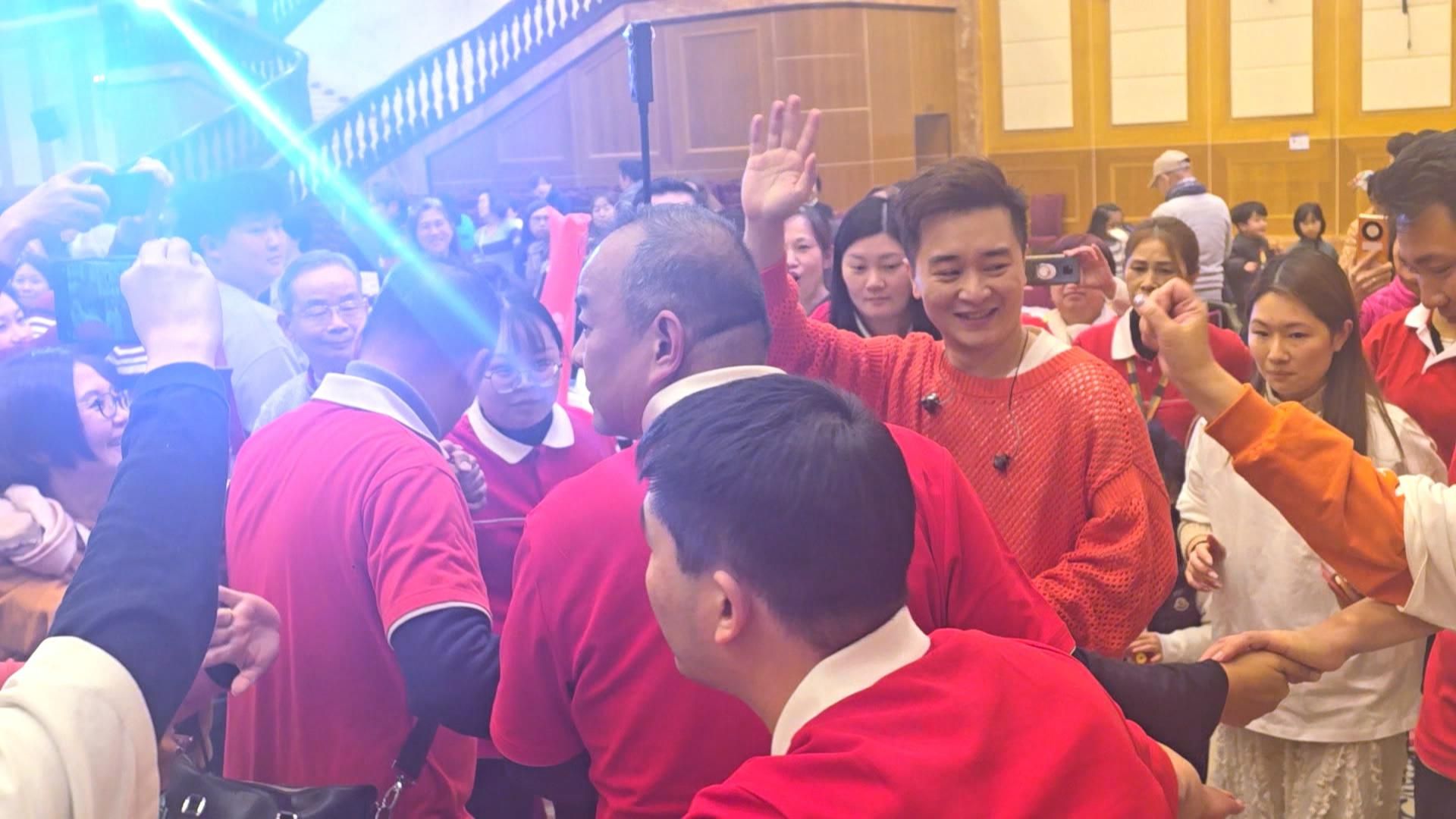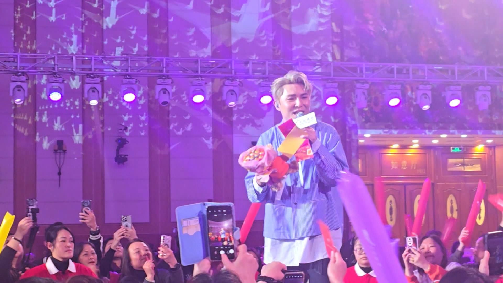 《中年好聲音2》「人氣王」譚輝智日前孖劉威煌、梁浩賢一齊為一個佛山旅行團演出,三位精選四大天王金曲演出,包括:《那有一天不想你》、《暗裡著迷》、《雨中感嘆號》等,無論係慢歌抑或舞動快歌都難佢哋唔到,三位由出場開始就大受團友歡迎,更收到勁多禮物、利是,全場High爆!![]()