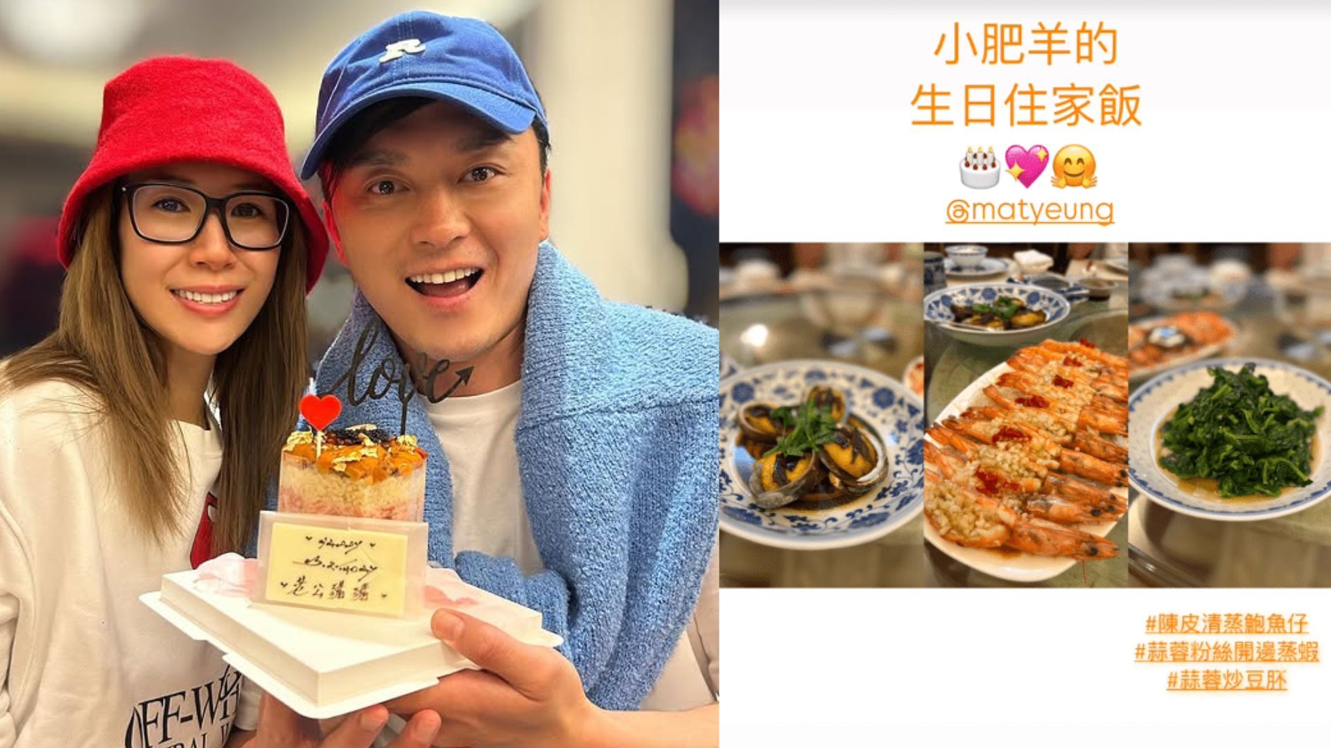 44歲楊明與38歲莊思明(Lisa)拍拖9年,2月27號係昨日(27日)楊明44歲生日,莊思明為楊明慶祝生日,炮製愛心海鮮大餐,仲送一個心型蛋糕寫住「Happy Birthday 老公豬豬」,難道二人已秘婚?