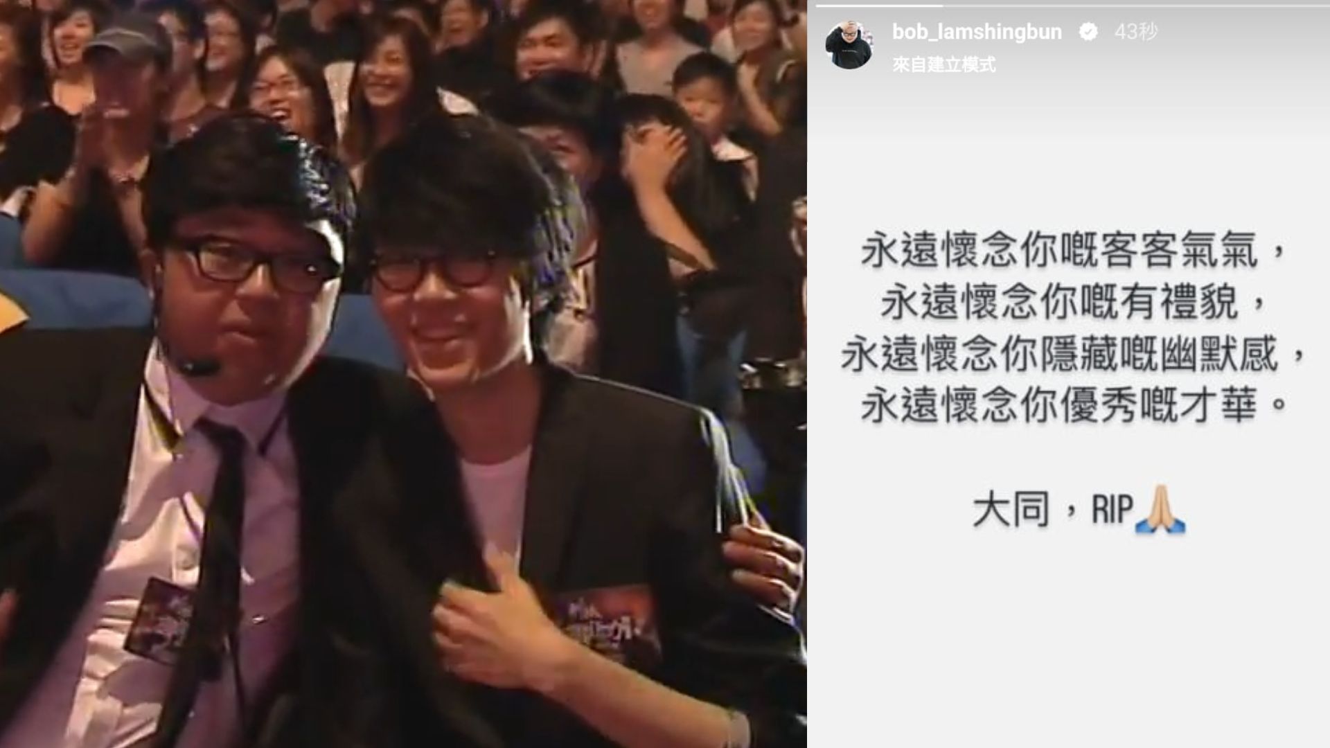此外,林盛斌(Bob)於電台擔任DJ時,跟不少歌手熟絡,他曾於新城國語力頒獎禮上,笑指自己西裝look跟方大同好似,當時方大同亦忍不住笑,Bob今日於IG動態留言:「永遠懷念你嘅客客氣氣,永遠懷念你嘅有禮貌,永遠懷念你隱藏嘅幽默感,永遠懷念你優秀嘅才華,大同RIP。」