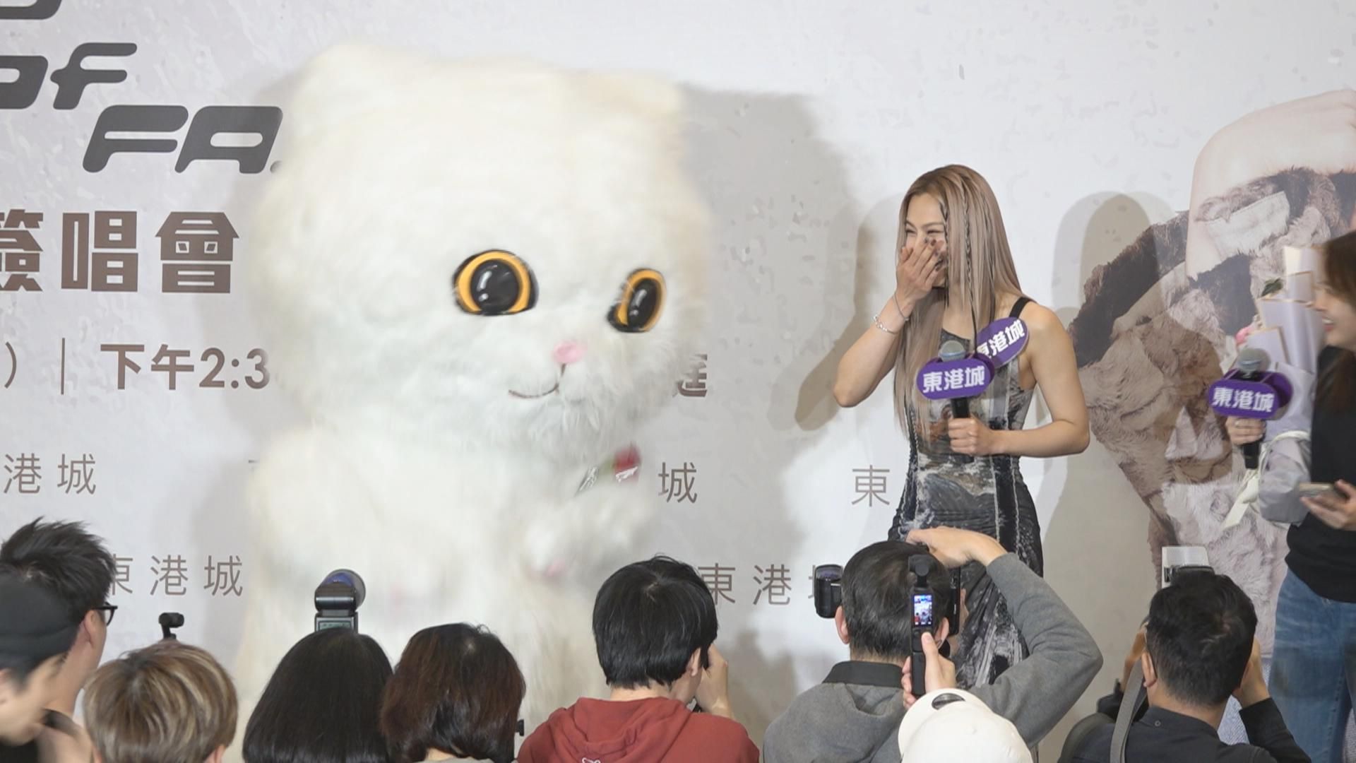 而一眾歌迷亦為Gin Lee送上驚喜,有人化身偶像愛貓杏仁糊上台,事前完全唔知情嘅Gin Lee非常感動,佢仲話估唔到簽唱會可以見到杏仁糊公仔上台。![]()