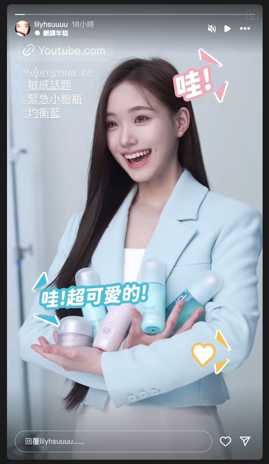 Lily post咗一段拍攝保養品廣告嘅幕後花絮,短片中Lily笑容燦爛,一邊對住鏡頭分享自己嘅護膚心得,仲趁拍攝空檔品嚐蛋糕,以及隨音樂開心起舞。Lily話雖然拍攝工作有啲攰,但好多謝工作人員,自己亦拍得好開心,睇來已經逐漸走出姨媽猝逝嘅陰霾。![]()