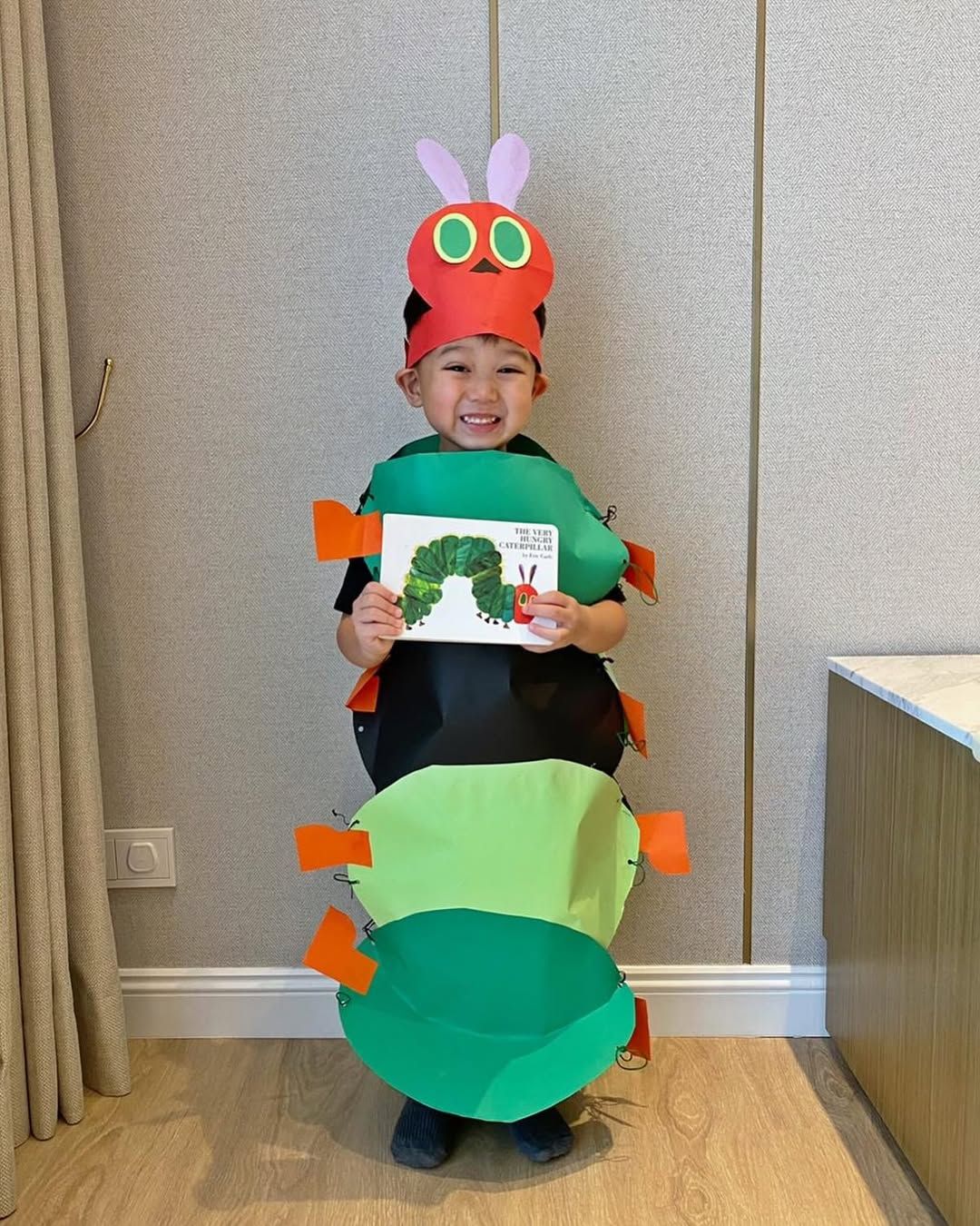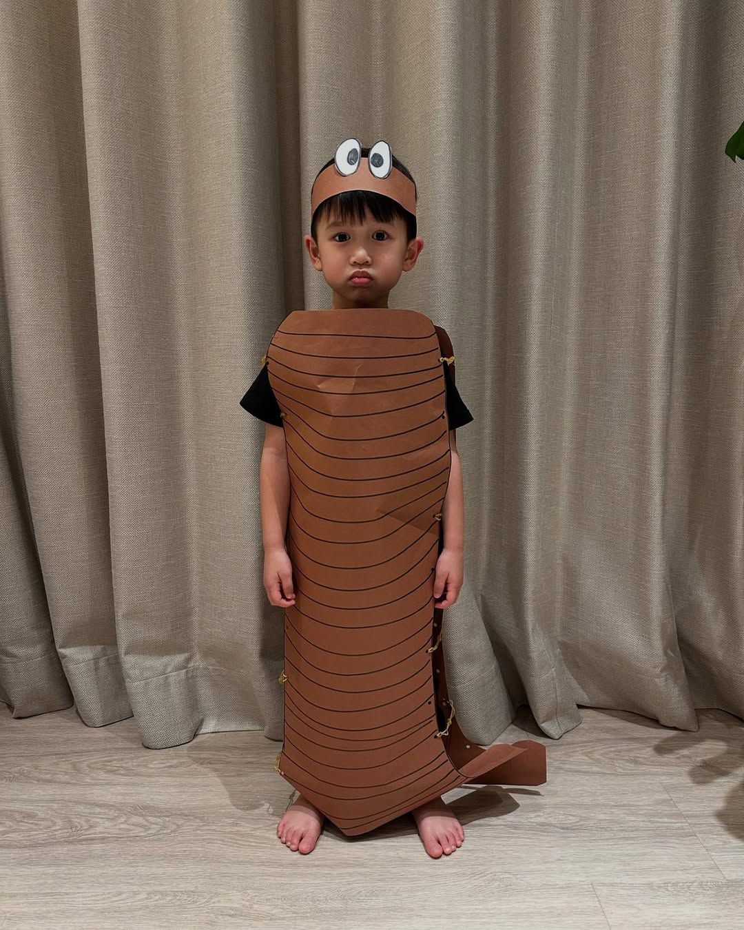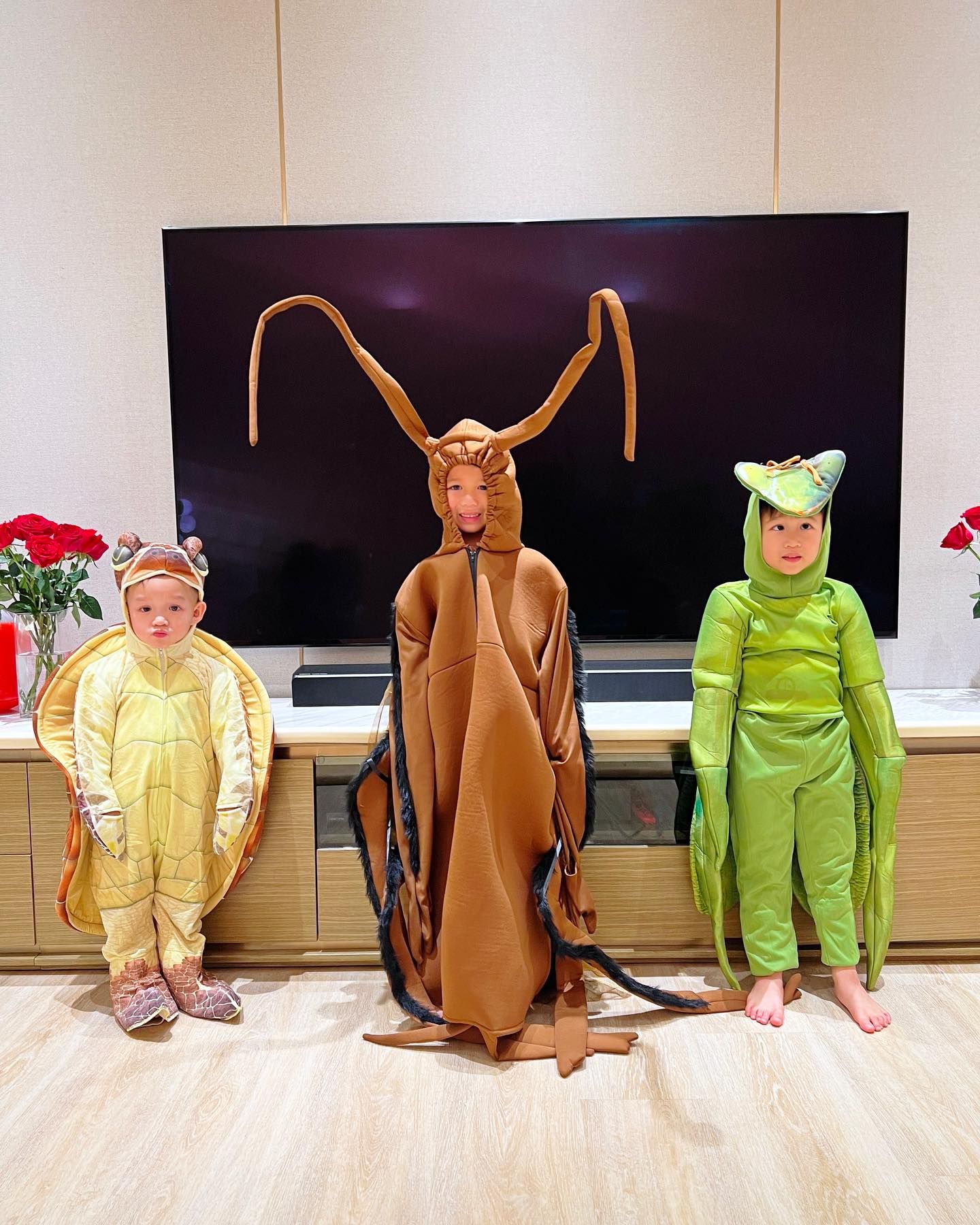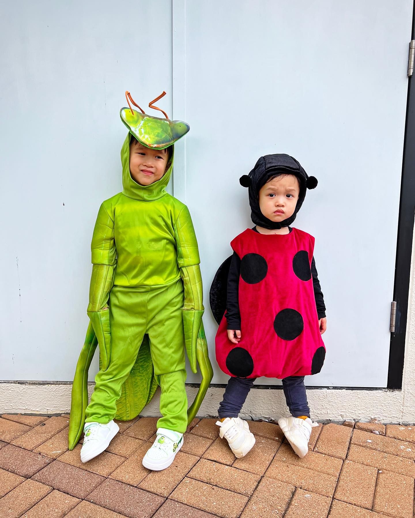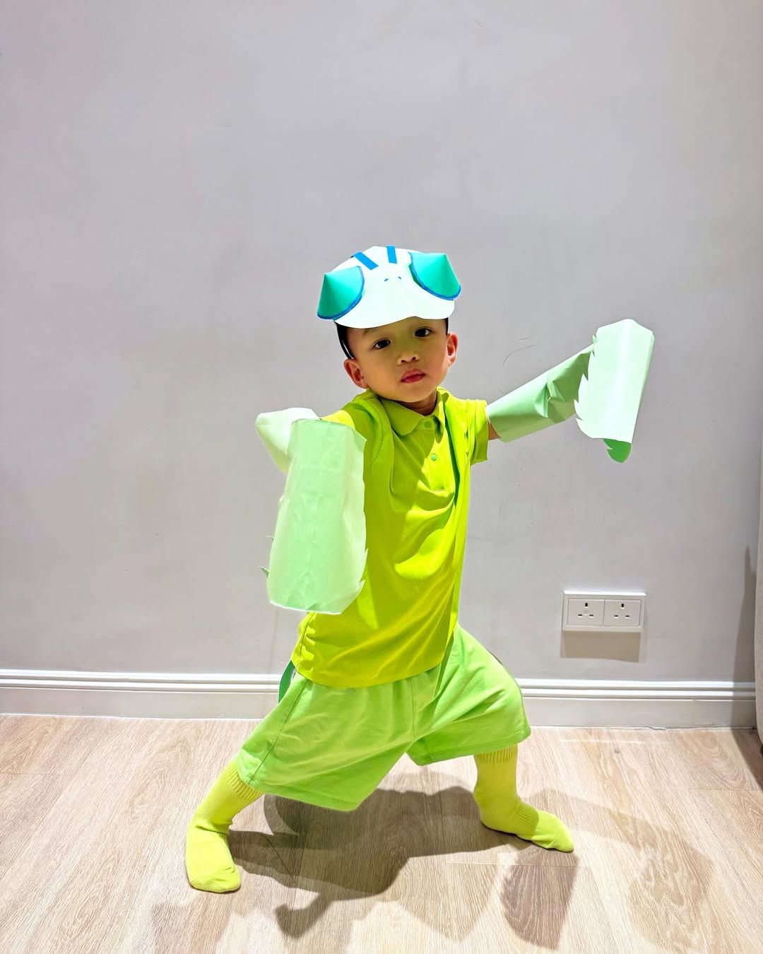 杏兒喺社交平台分享三少爺Liam變身成螳螂嘅相,Liam對造型非常滿意,仲喺鏡頭前擺出多個螳螂姿勢,相當可愛。杏兒寫上「春天又到了,又係時候考驗阿媽,今年三少爺要做螳螂,阿媽整完,三少爺表示好滿意,玩咗好多日,大家仲記唔記得二少同大少之前扮咩?」