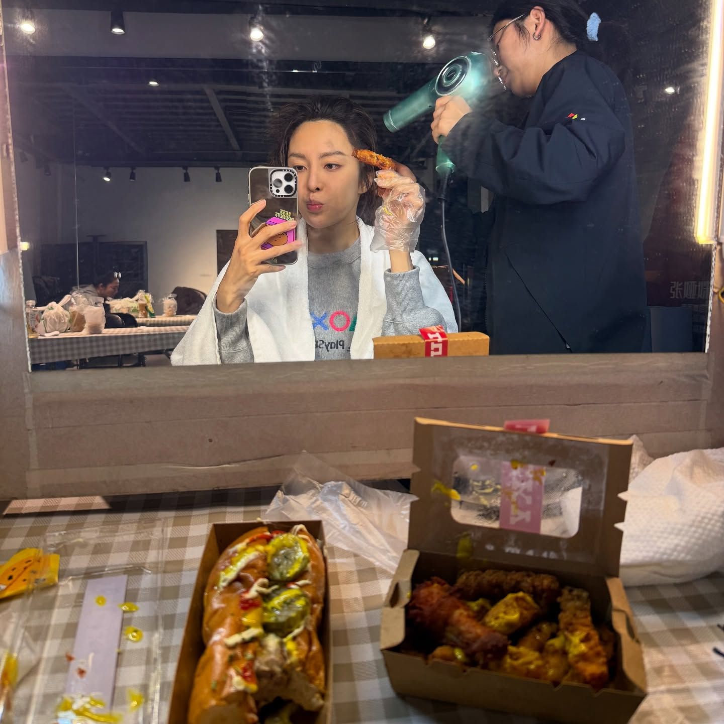 三后同場,相信一定火花十足,而Kelly就喺網上分享今次拍攝嘅一點一滴喇,好似有同靚靚美儀嘅合照,仲有化妝時補眠,同埋拍攝空檔狂擦唔同美食嘅小片段。![]()