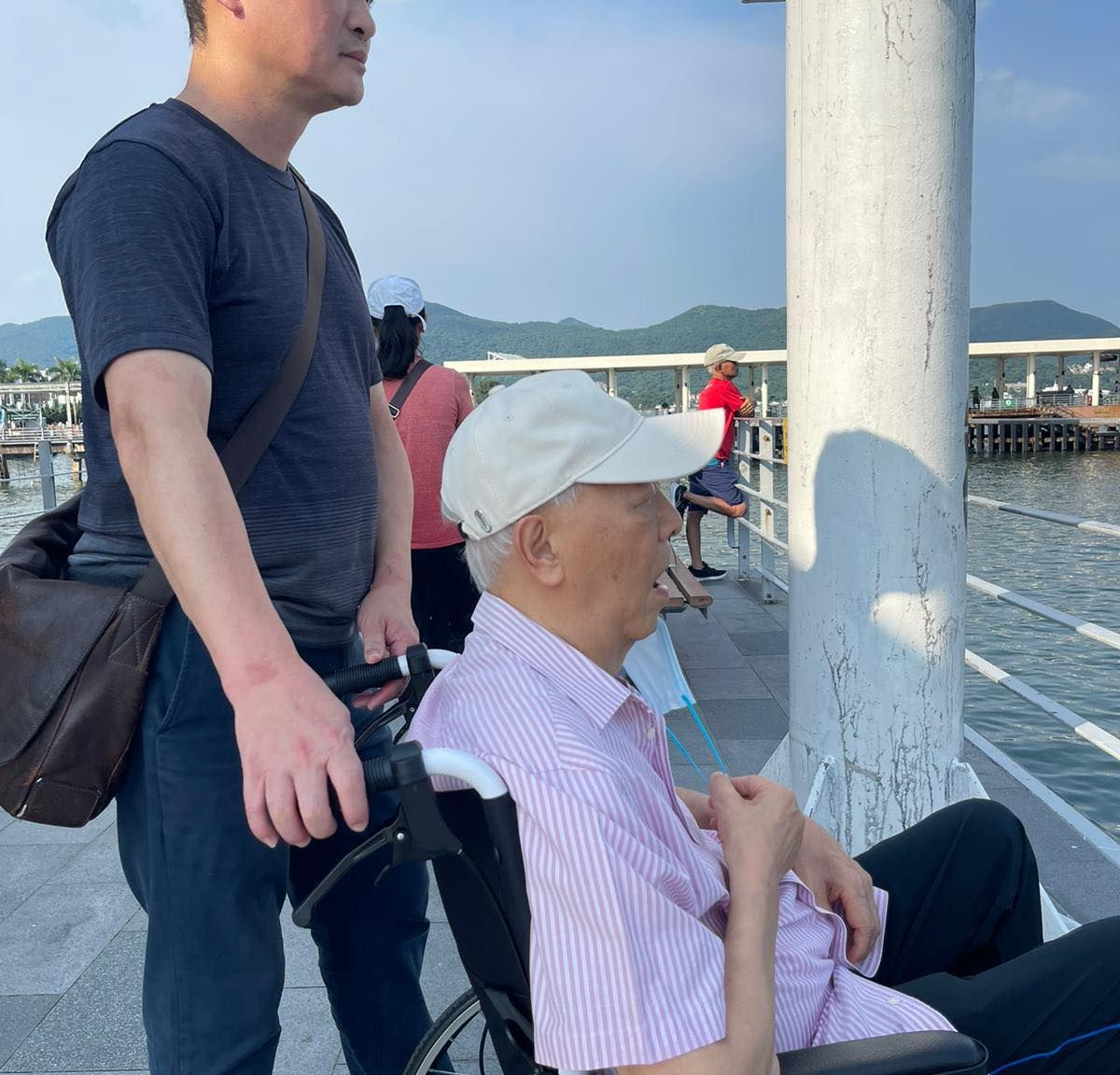 另外,戲劇導師余俊峰亦前往探望King Sir,佢更陪伴King Sir到西貢海邊睇海景,頭戴白色Cap帽、着住間條恤衫嘅King Sir全程坐輪椅,去海邊時候仲自己拿下口罩呼吸新鮮空氣,相中見King Sir精神尚可,但明顯比去年農曆年時消瘦。