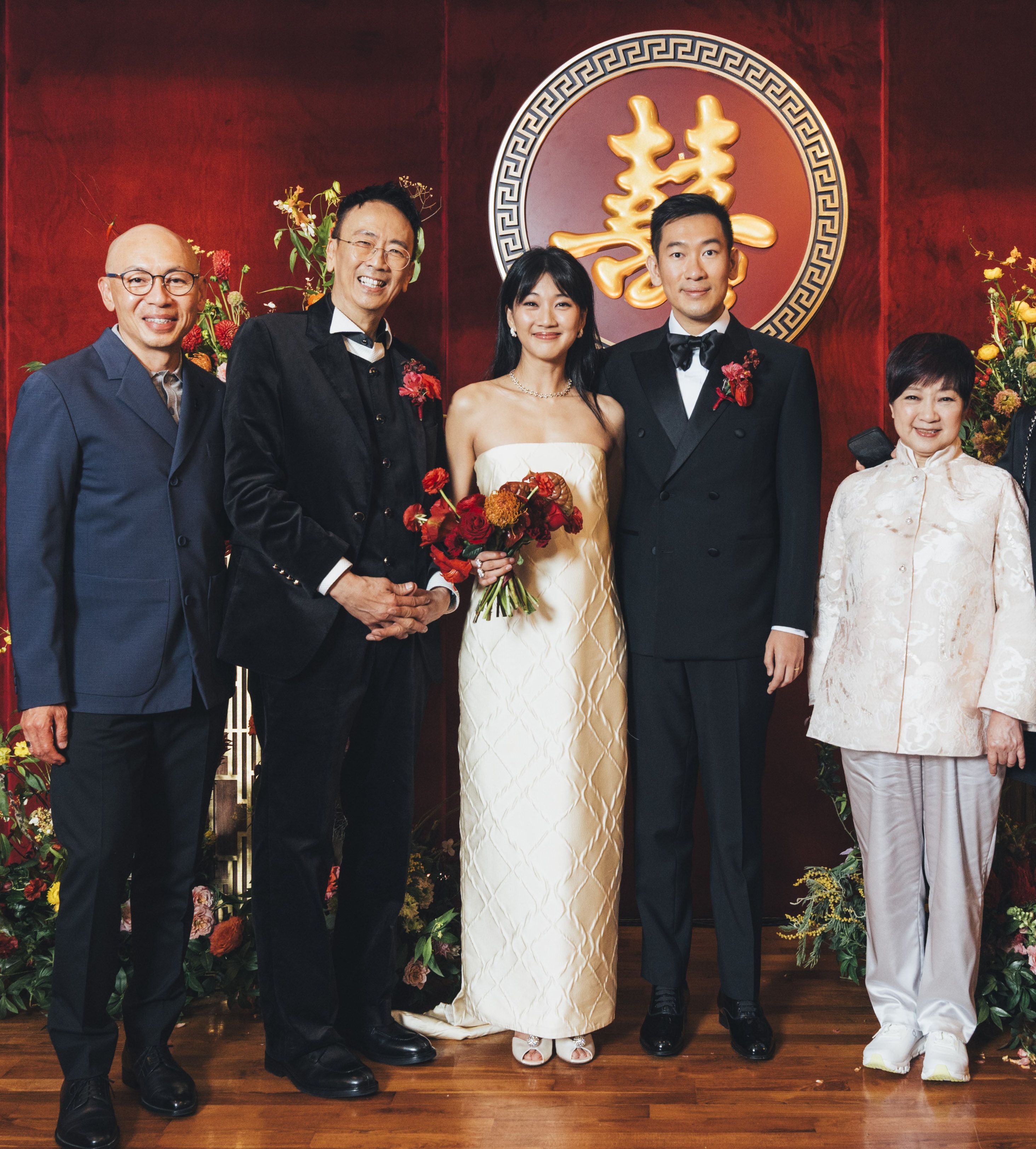婚宴當日,鄭丹瑞嘅身份除咗係外父之餘,仲係愛女嘅婚禮司儀,而林珊珊、小美、樂易玲、張堅庭、陳德森、馬榮成、林超賢、俞琤及陳淑芬等一眾與鄭家相識接近 50 年嘅圈中好友亦應邀出席,俞琤更難得開金口,喺台上幽默地以棟篤笑形式為一對新人送上祝福。![]()