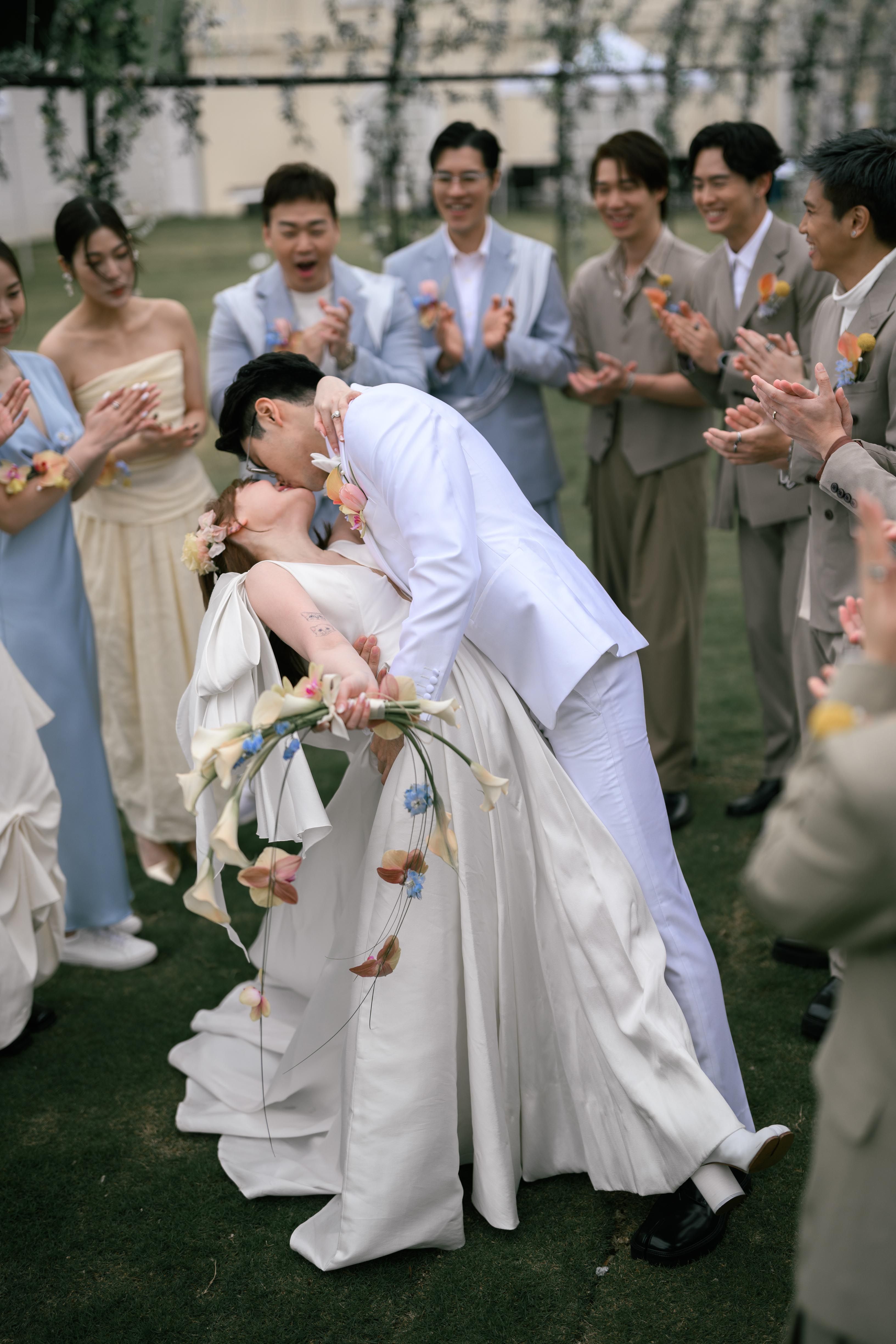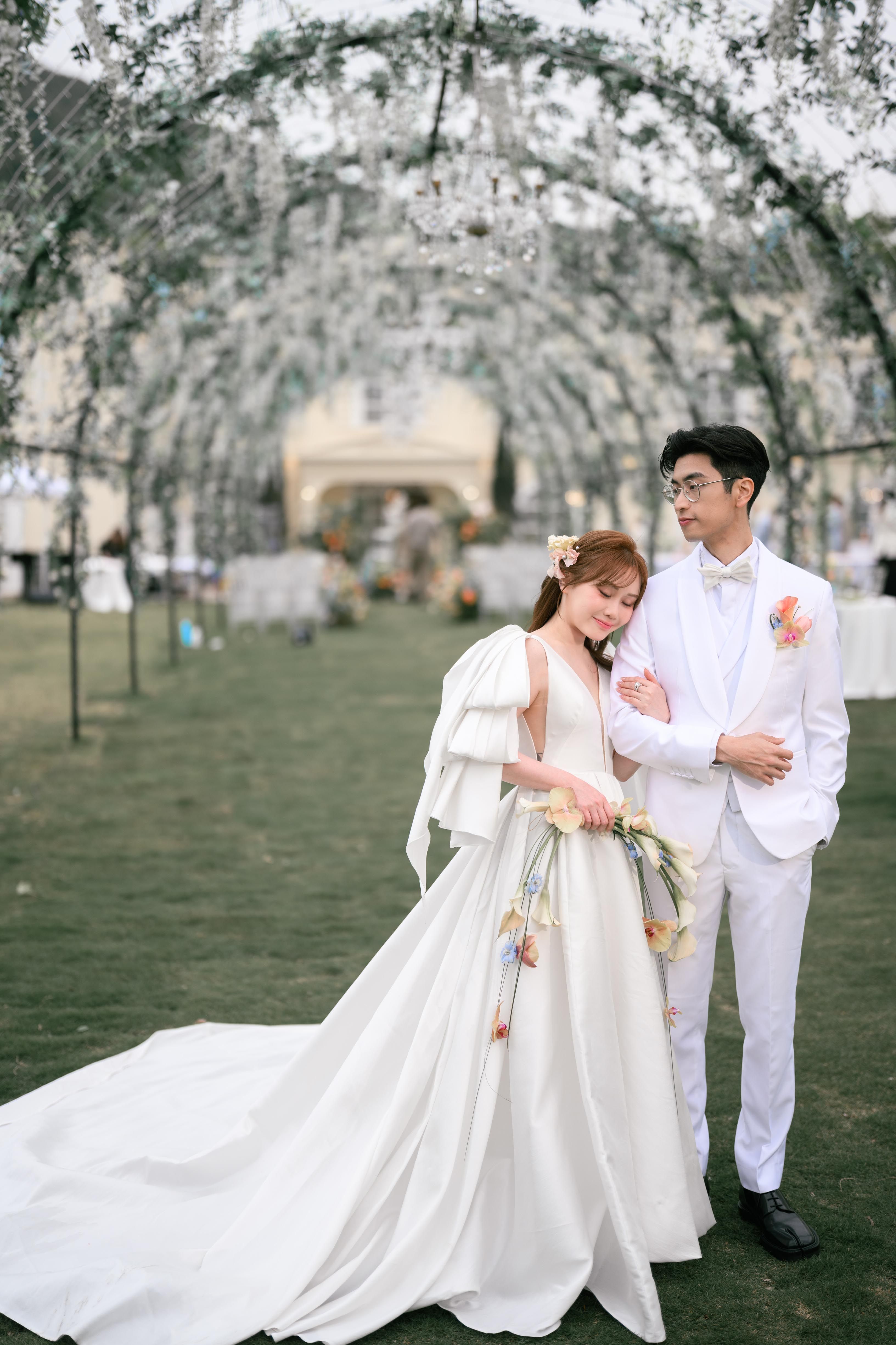 由Hana分享嘅婚照可見,佢所穿嘅一套DeepV婚紗性感亦不失優雅,造型似足花仙子。一對新人喺親友見證下完成儀式,笑得非常幸福,佢地又喺大家面前甜蜜錫錫,大放閃光彈,多位圈中人包括小儀、廖子妤、馮允謙、陳蕾亦紛紛留言為兩位送上祝福。![]()