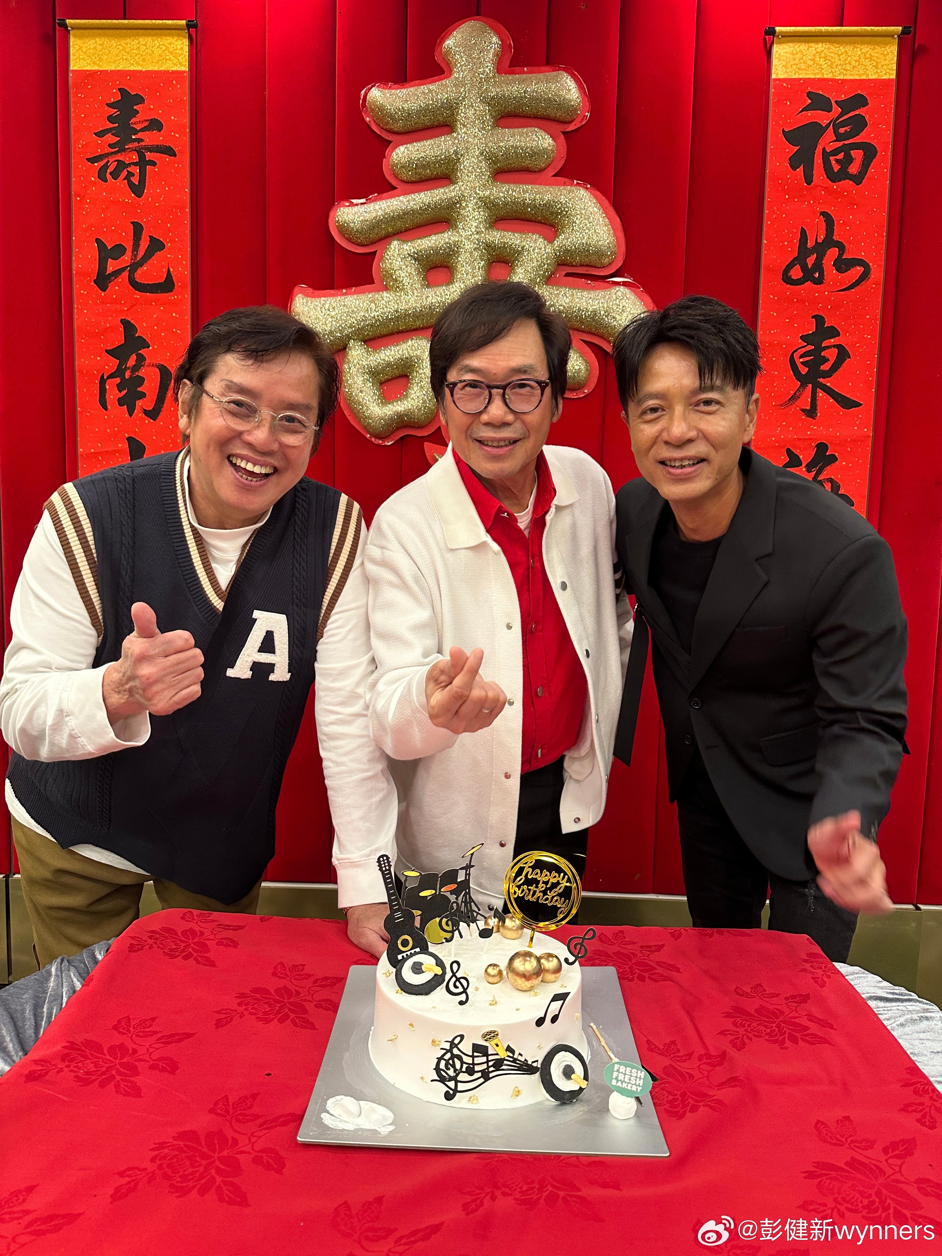 閒時熱愛釣魚嘅 彭健新 今日踏入76歲,早年身為溫拿成員之一嘅「健仔」,就獲一眾好友包括 譚詠麟 曾志偉 苗僑偉 送上金咪蛋糕為佢慶祝,同數十年好友共聚嘅壽星非常高興,仲Post出咪高峰蛋糕特寫,而忙爆嘅 李克勤 亦激罕現身飯局, 鄺美雲 亦有向壽星健仔送上禮物。