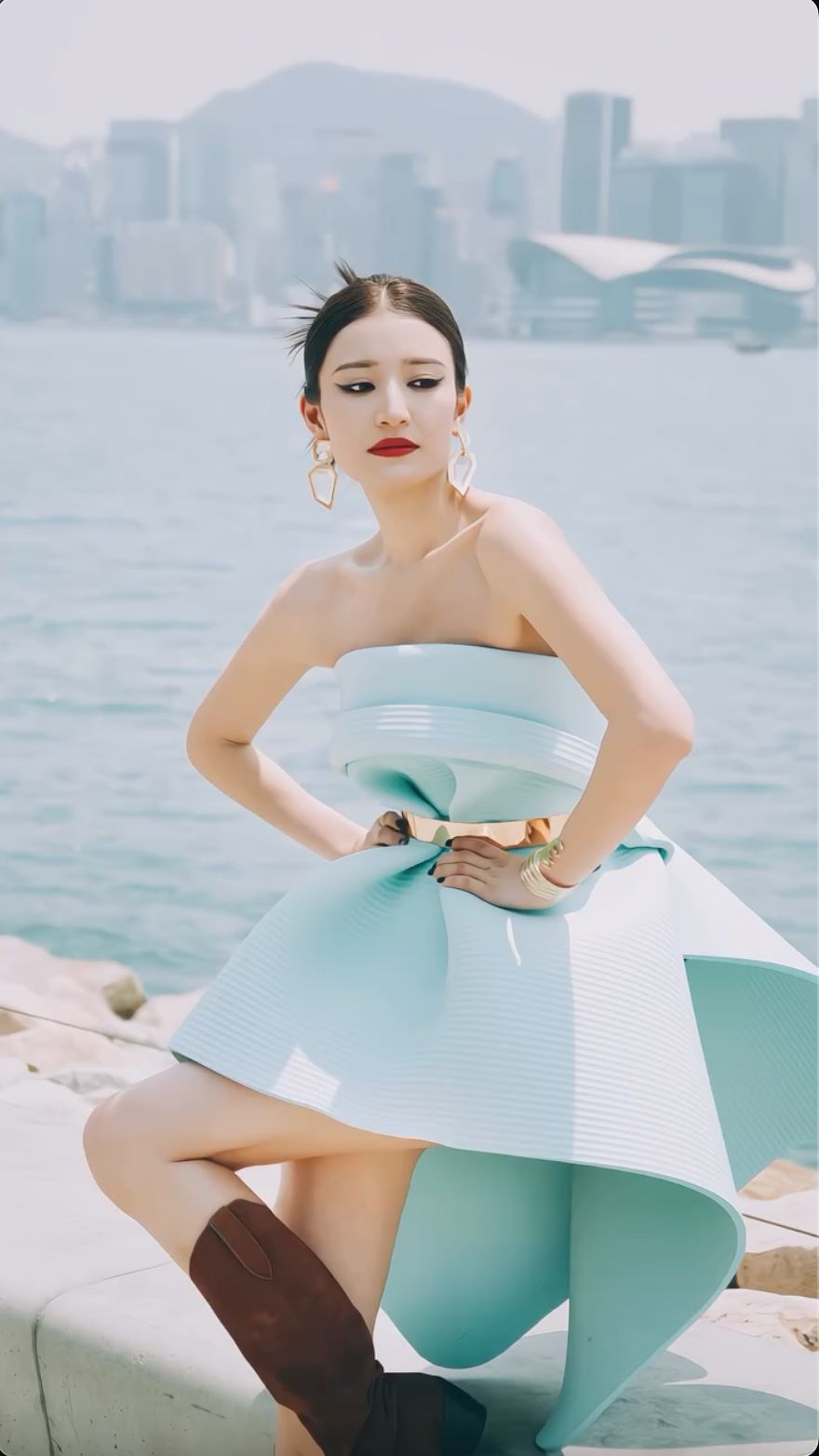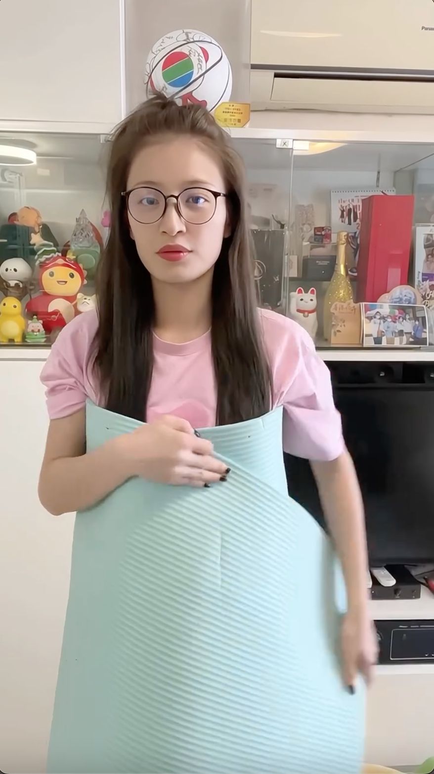 而家正放假休息嘅Sharon,日前就應朋友嘅邀請拍咗條挑戰片,事緣係有朋友send咗條片畀佢,問佢夠唔夠膽挑戰下將瑜伽墊着上身,素顏居家look出鏡嘅Sharon就豪言表示:「挑戰咋嘛,又唔使錢,挑戰下囉!」講完就將一張藍綠色嘅瑜伽墊圍上身,睇落相當平平無奇,但點知鏡頭一轉,Sharon就將瑜伽墊着出高級訂製時裝嘅氣勢,佢仲着住呢件瑜伽墊露肩禮服喺海邊行起catwalk,之後又影咗多張時裝照,令人完全忽視佢身上嘅只係一張瑜伽墊。![]()