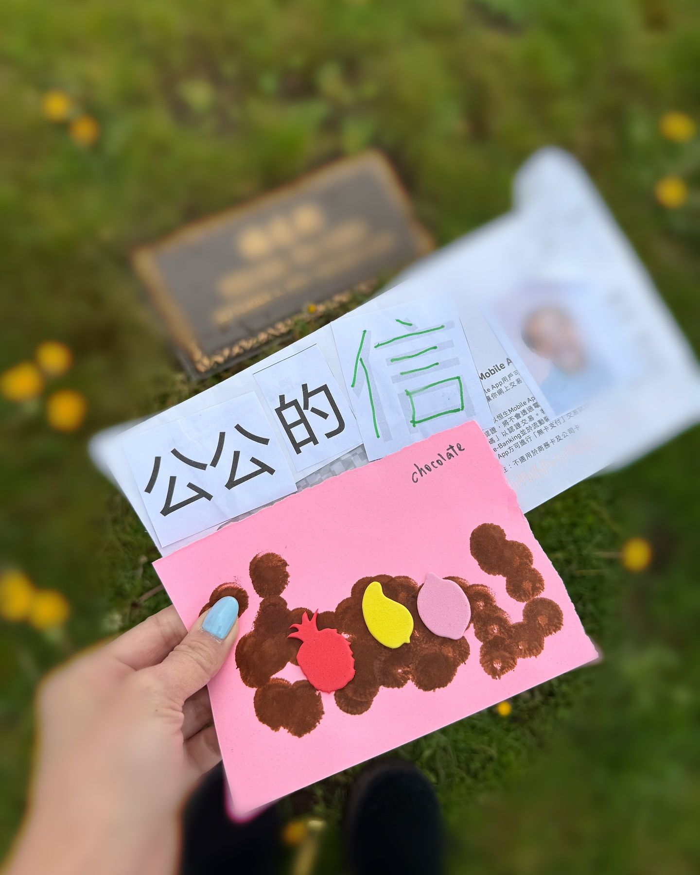 飛抵加拿大之後,Rebeea就帶埋囡囡一齊去墳場,Tanya代細佬Tristan向公公送上親手整嘅手繪朱古力及信,孝心盡在不言中。Rebeea亦記錄呢幕畫面,再帖文流露不捨之情「漫長嘅三個月過去了,你好嗎?我哋好掛住你。媽媽真係好想你。佢每天都為你心痛。Tanya為你帶嚟一封信同一些手繪朱古力。」![]()