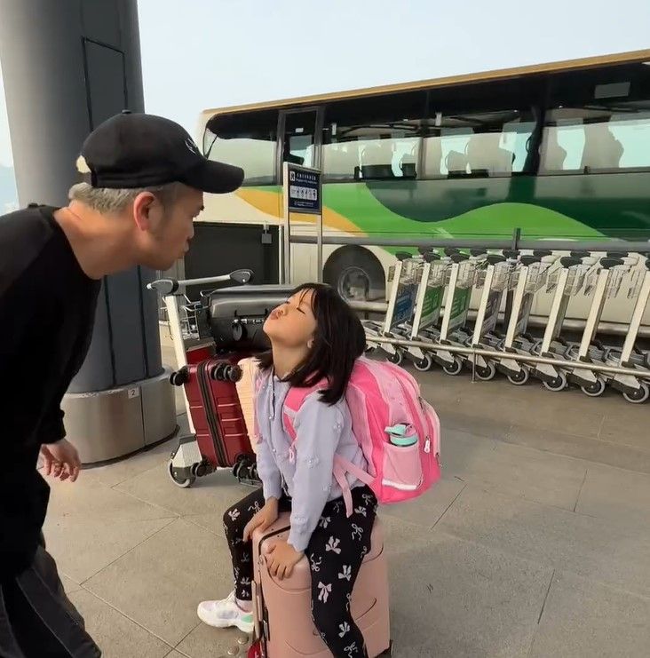 未能同行嘅老公阿Tim,親自送太太同囡囡去機場,阿Tim獲太太親吻答謝,但前世情人Tanya同爸爸Goodbye Kiss之後,就難捨難離咁攬實爸爸,非常痴纏。![]()
