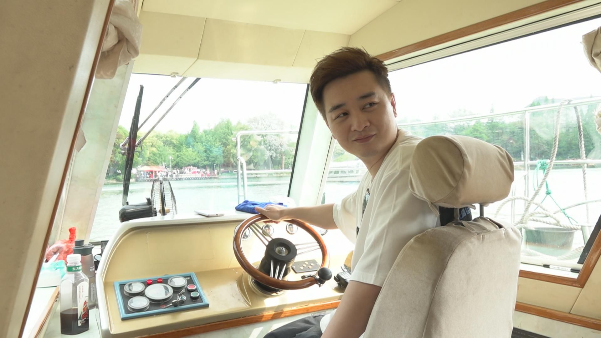 唔知係咪玩得太忘形,輝智差啲連銀包都唔見埋,好彩最後失而復得,真係嚇到一額汗。心情靚返晒嘅輝智又繼續下一個行程,就係坐船遊湖喇,貪玩嘅佢仲搶埋船長嘅飯碗,話要揸船帶大家去澳門,認真鬼馬。![]()