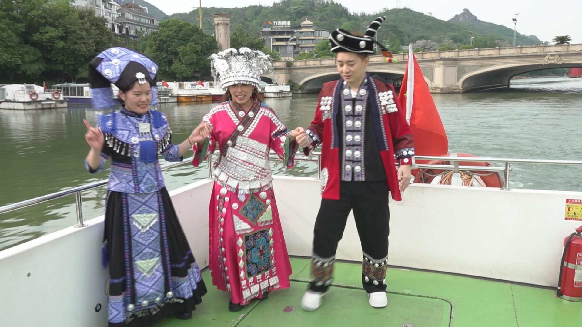 喺咁靚嘅景色下遊湖,輝智同主播 潘盈慧 仲換返件民族服,體驗一下獨特嘅民族文化啦,佢兩個仲跟當地嘅民族姑娘學跳民族舞同埋唱山歌,果然係入鄉隨俗。