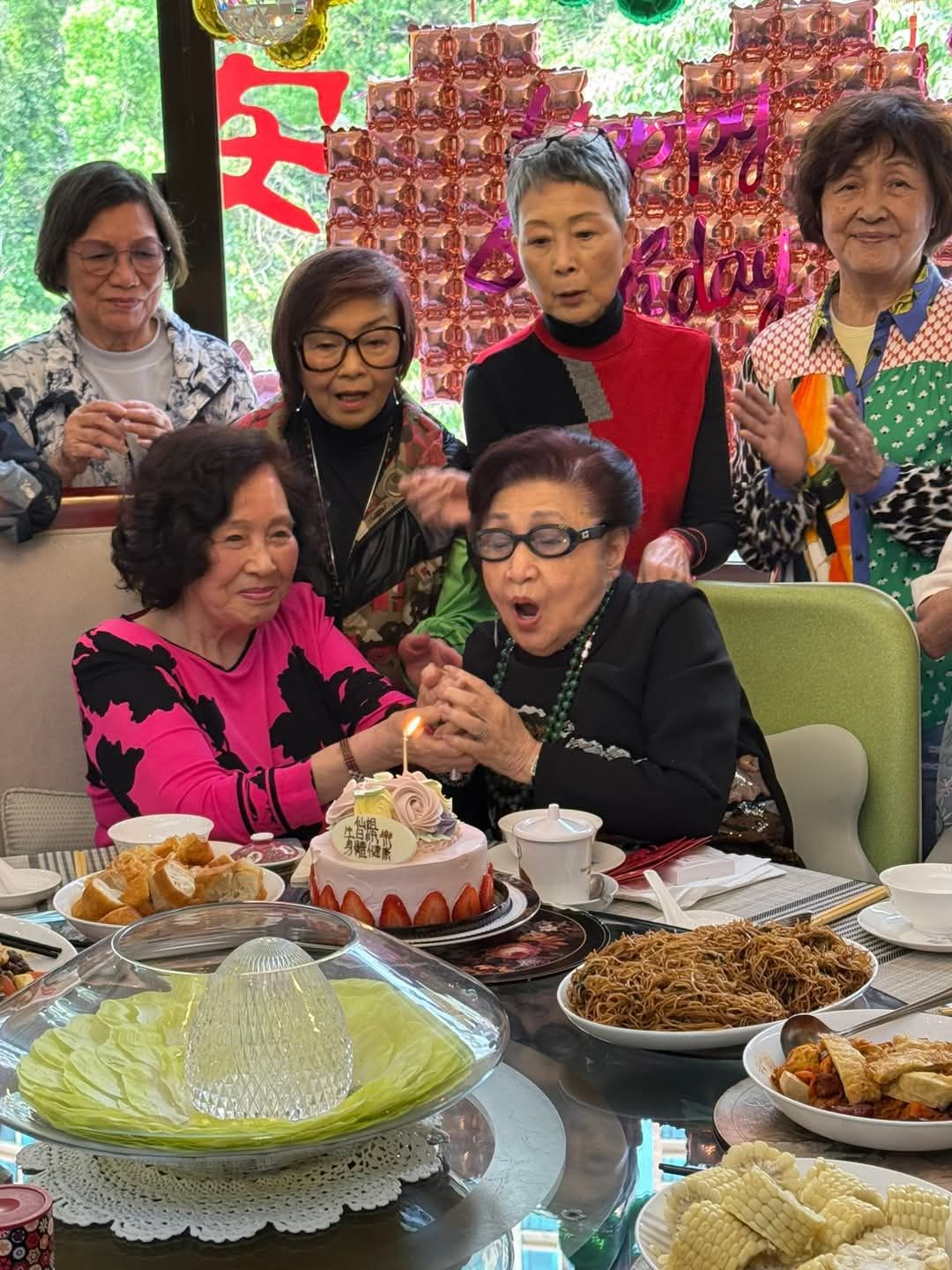 今年已經係仙姐97歲生日,大家一早就到仙姐屋企悉心佈置,除咗喺窗戶貼上巨型心心氣球,又準備好唔少佳餚美食,徒弟陳寶珠、梅雪詩同謝雪心就向師傅祝壽。![]()