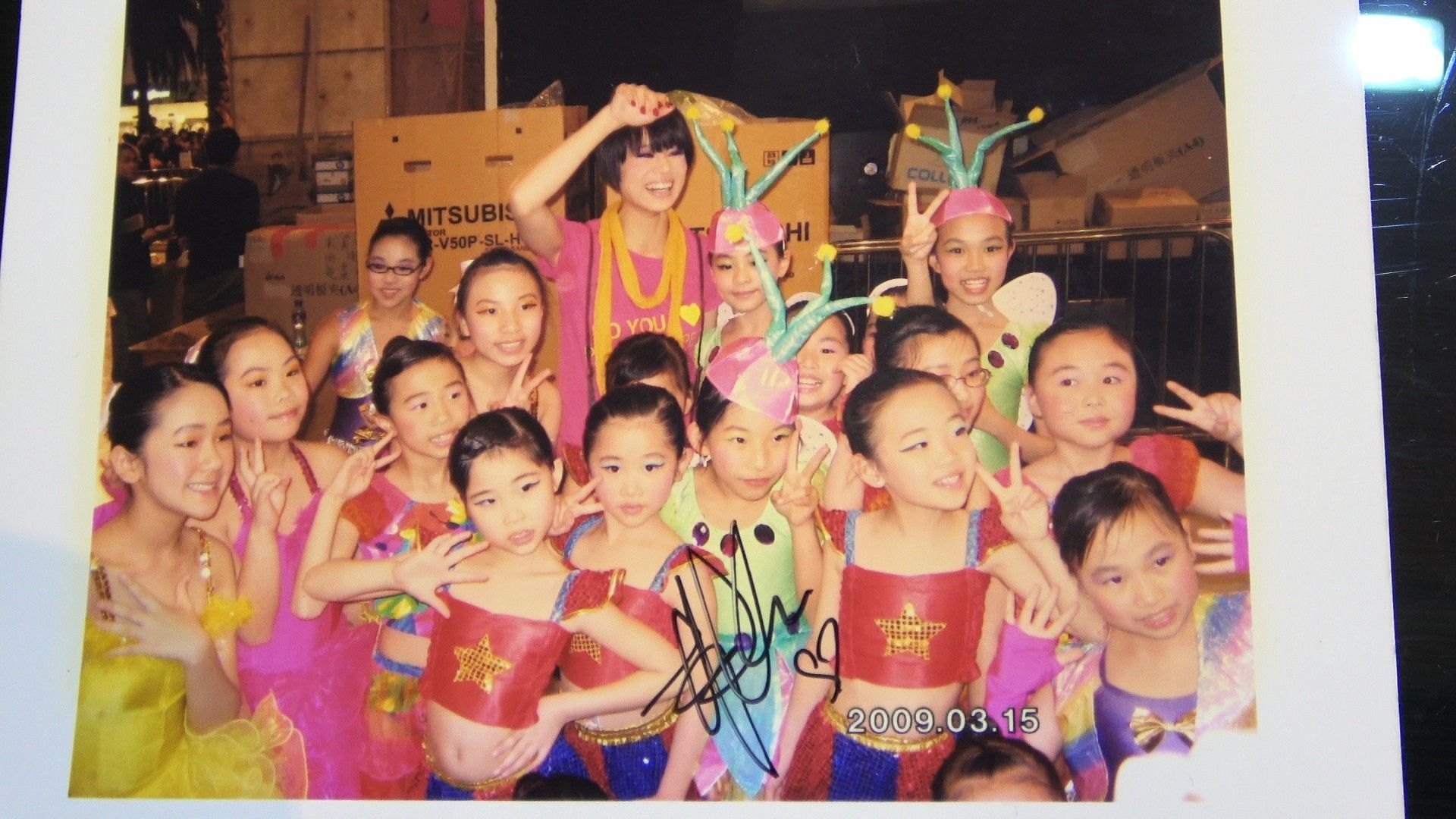 原來當年采貽參加跳舞比賽,杏兒擔任嘉賓,佢話「今日見到杏兒好激動,好開心,仲要多謝師姐好貼心,喺我個樣嘅位置簽名。而我一直保留呢張相係因為細個就鍾意佢,而佢演出嘅電視劇我都有睇,演技好好,有才華,係我學習榜樣。今日我因為做大會司儀,可以有機會喺台上,近距離企喺杏兒姐姐旁邊傾偈。」