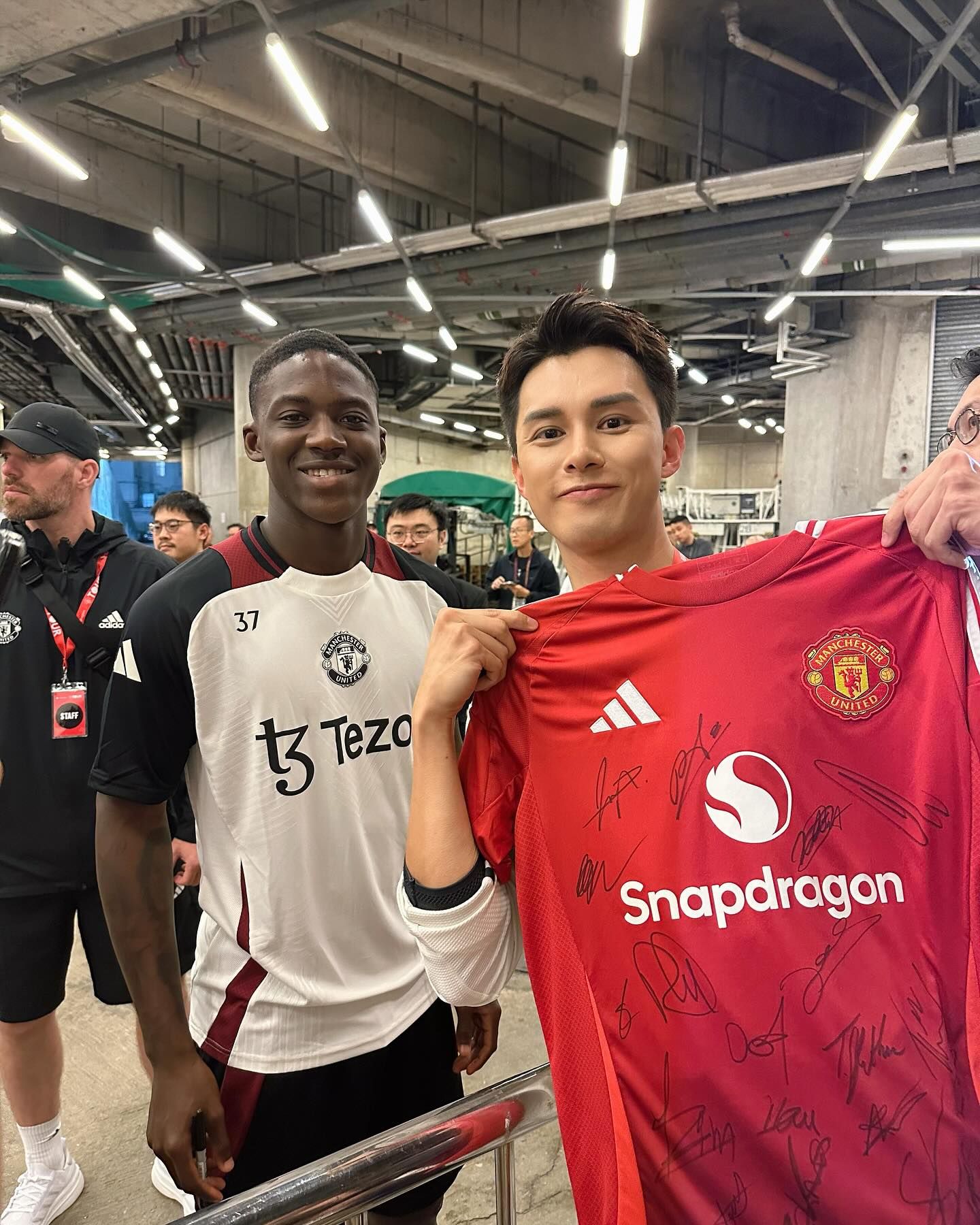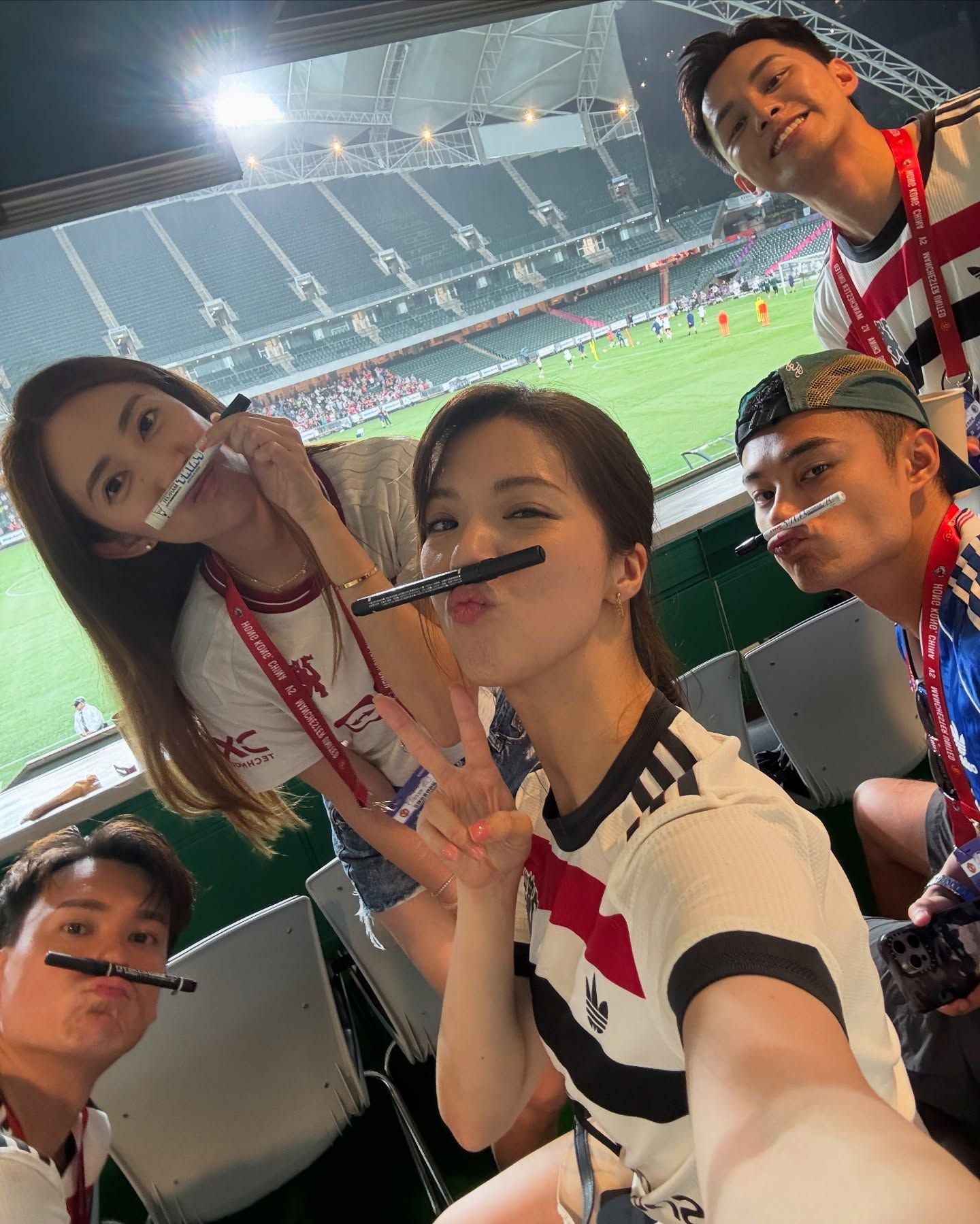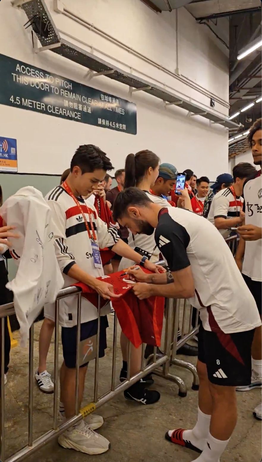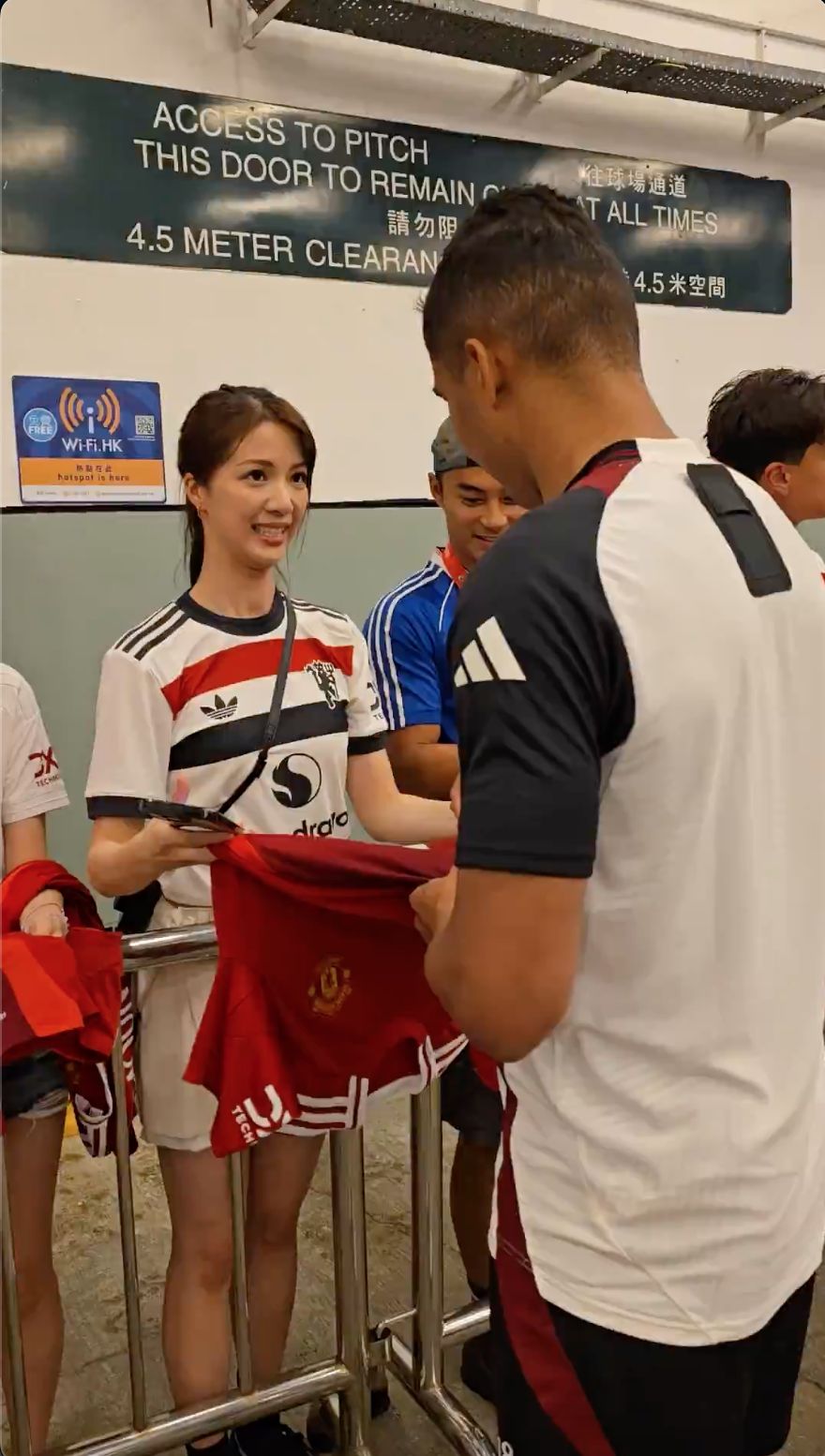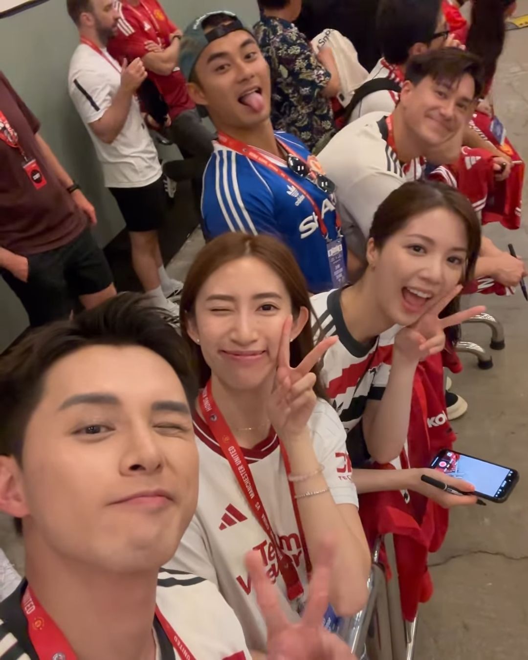 比起呢對已經公開咗嘅情侶,另一對仲處於「緋聞」狀態嘅朱敏瀚同陳曉華就相對嚟講較為低調,曼聯噚晚喺官方平台Po出眾球星於球場通道為球迷簽名影相嘅片,片中就見到何廣沛等星級球迷,不過朱敏瀚同陳曉華唔知係咪怕畀人影到,所以佢哋喺鐵柵前等攞簽名時,都要隔住孔德賢喺中間。![]()